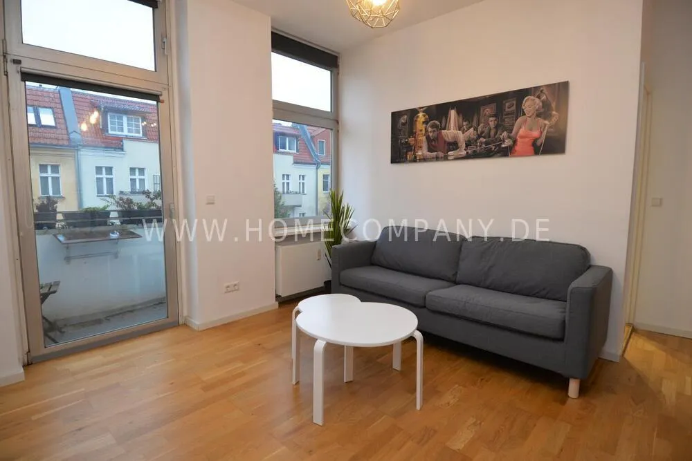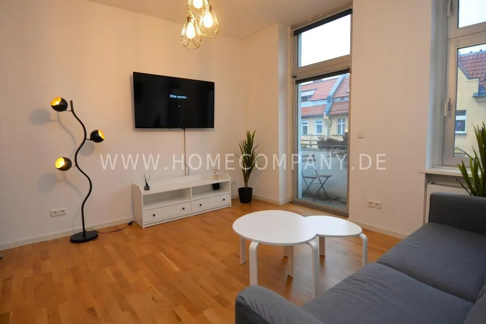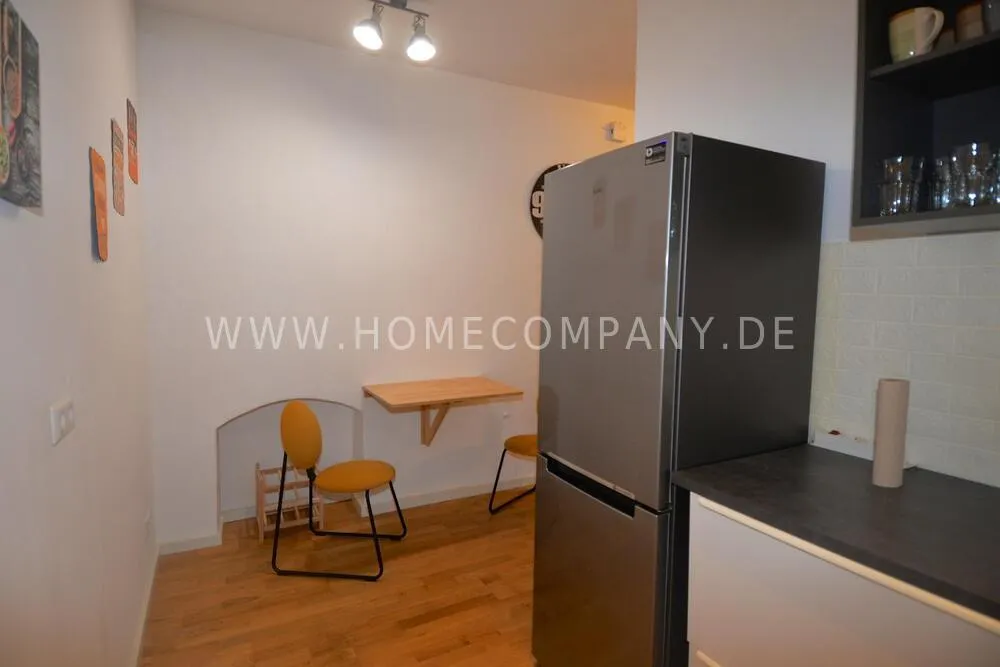 The sleeping area can be separated from the living room by a curtain. There is a comfortable couch and a large HD TV with Magenta TV and fast internet.