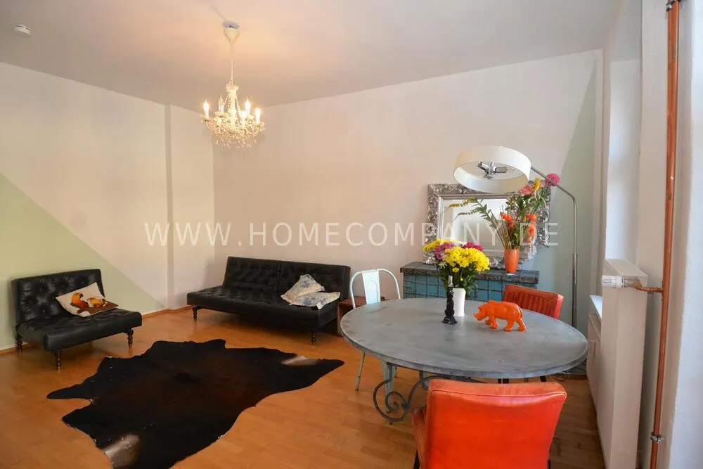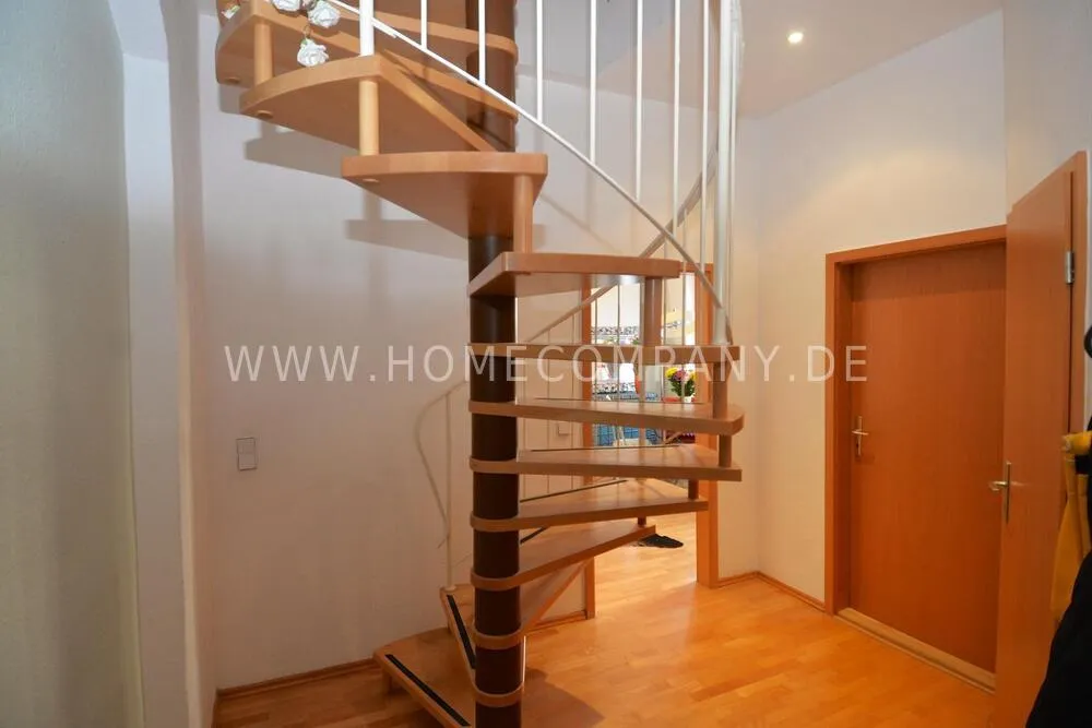 This stylish, fully furnished maisonette apartment in the heart of Prenzlauer Berg combines urban living with modern comfort. Spread over two levels, it features bright, open spaces and contemporary furnishings. The upper level offers a cozy bedroom with a spacious wardrobe and a comfortable double bed, perfect for restful nights. The large bathroom includes an inviting bathtub and elegant finishes, while a separate guest WC is conveniently located on the lower floor.