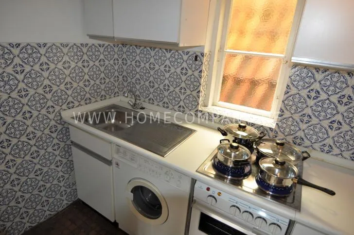 The flat has a hall, a huge living-room with opening to a second smaller room, a bedroom, a fitted kitchen and a bathroom with shower.