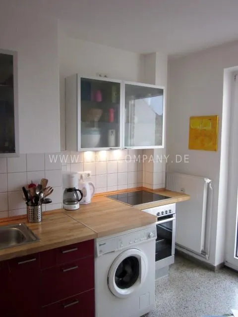 This apartment is is a bright beautiful old building flat near university directly. The apartment has 2 separate rooms. A living room and a bedroom, both rooms are very bright, sunny and modern furnishings and each room has a television. The apartment offers a fitted kitchen with dishwasher and microwave, a washing machine is also available.