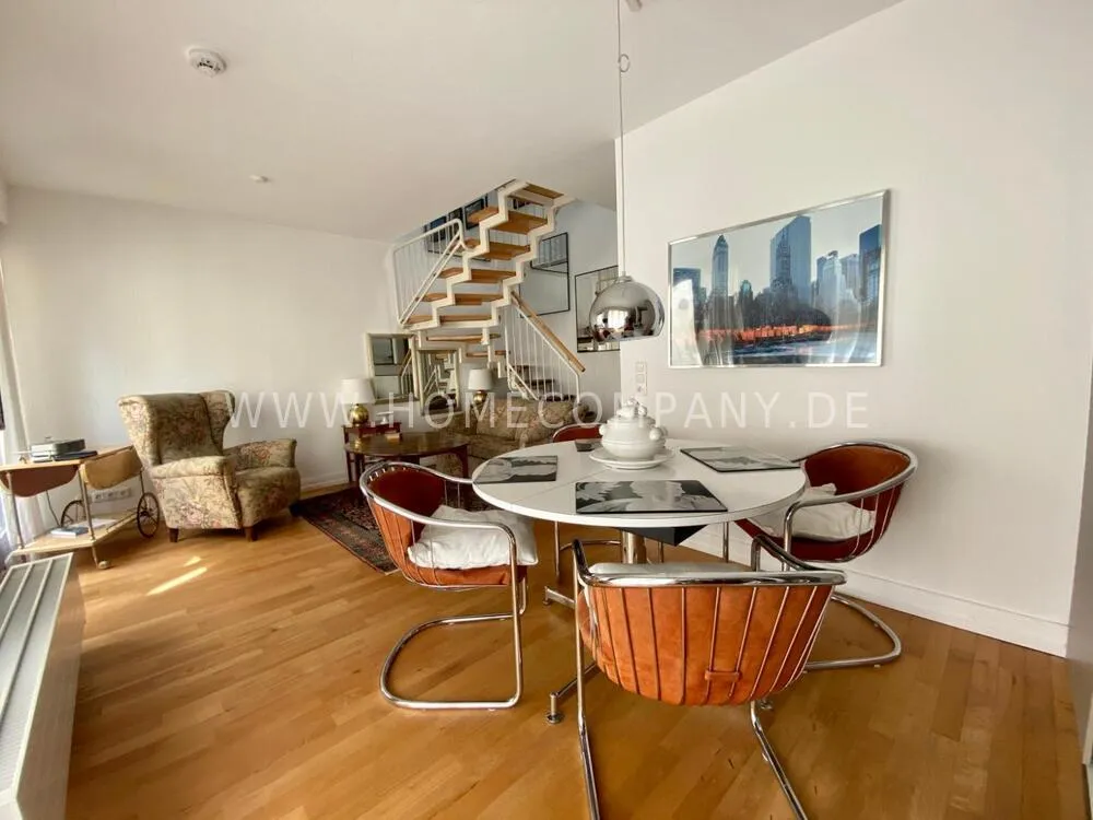 This attractive, quiet 3 room maisonette apartment is located in the middle of Lübeck's old town in a beautiful residential complex. It is completely self-contained with a separate entrance and its own front door. On the ground floor, large living-dining room with access to the large terrace, generously equipped open kitchen. Bathroom with bathtub, washing machine and dryer. On the upper floor, bright gallery/study room with desk and filing cabinet, bedroom with double bed (1.80m wide).
