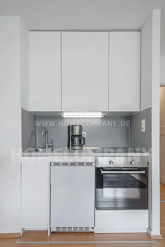 3rd floor with lift. Combined living/bedroom with comfortable double bed and small table with chairs. Small kitchenette with oven which is integrated in living/bedroom. White bathroom with bathtub. There is a wardrobe in the hall. There is laid bright laminate flooring in the apartment.. The extra amonut for the second person is € 100,00.