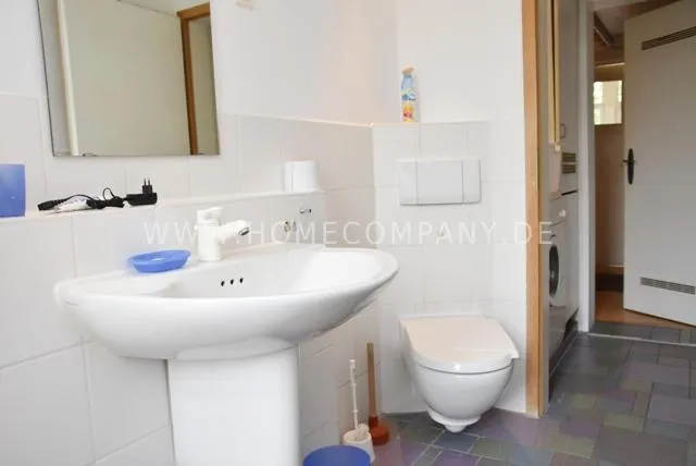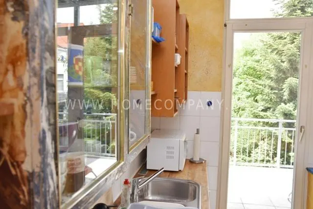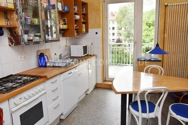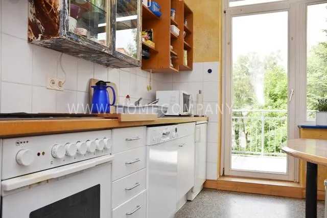 Large and bright fitted kitchen with dishwasher, table, chairs and balcony (sunny, also in the evening).