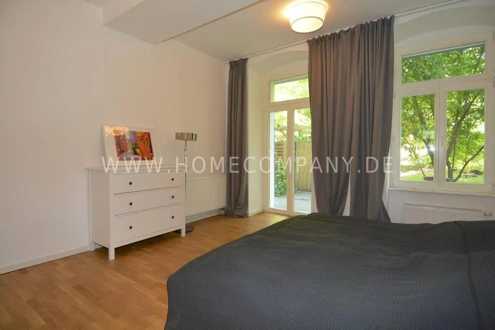 This beautiful apartment is located on the ground floor of an apartment building right next to Zionskirchplatz. All windows are new and equipped with electric blinds.