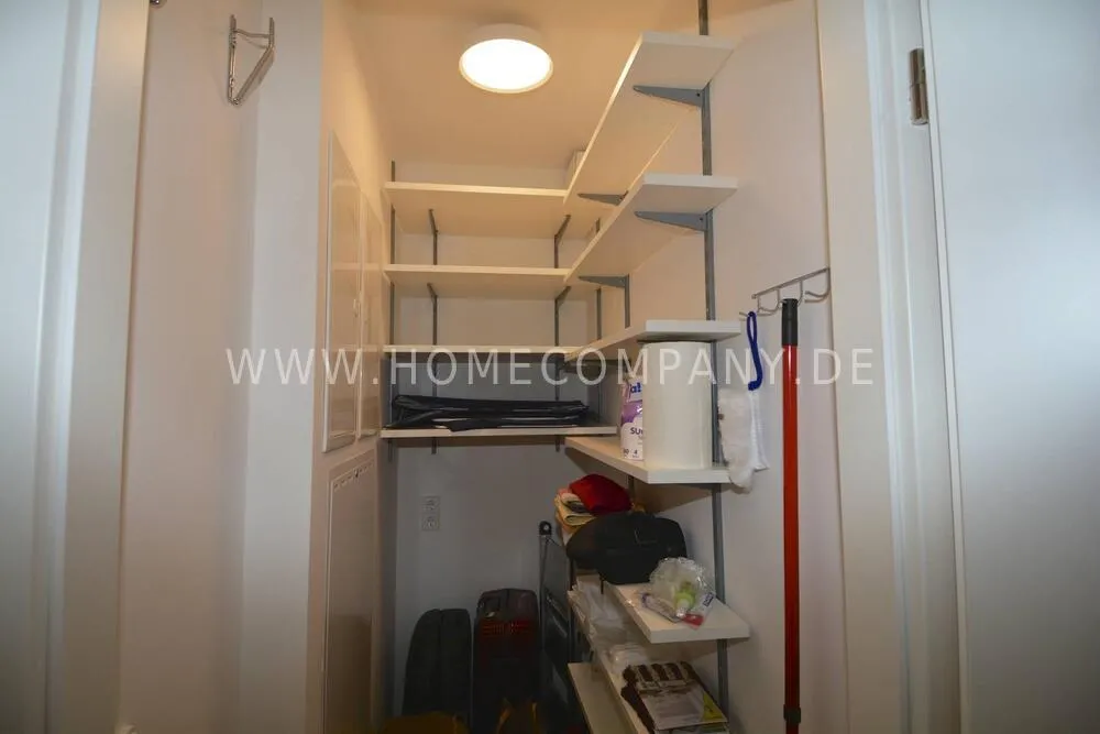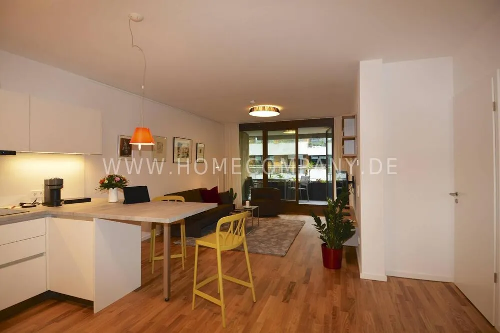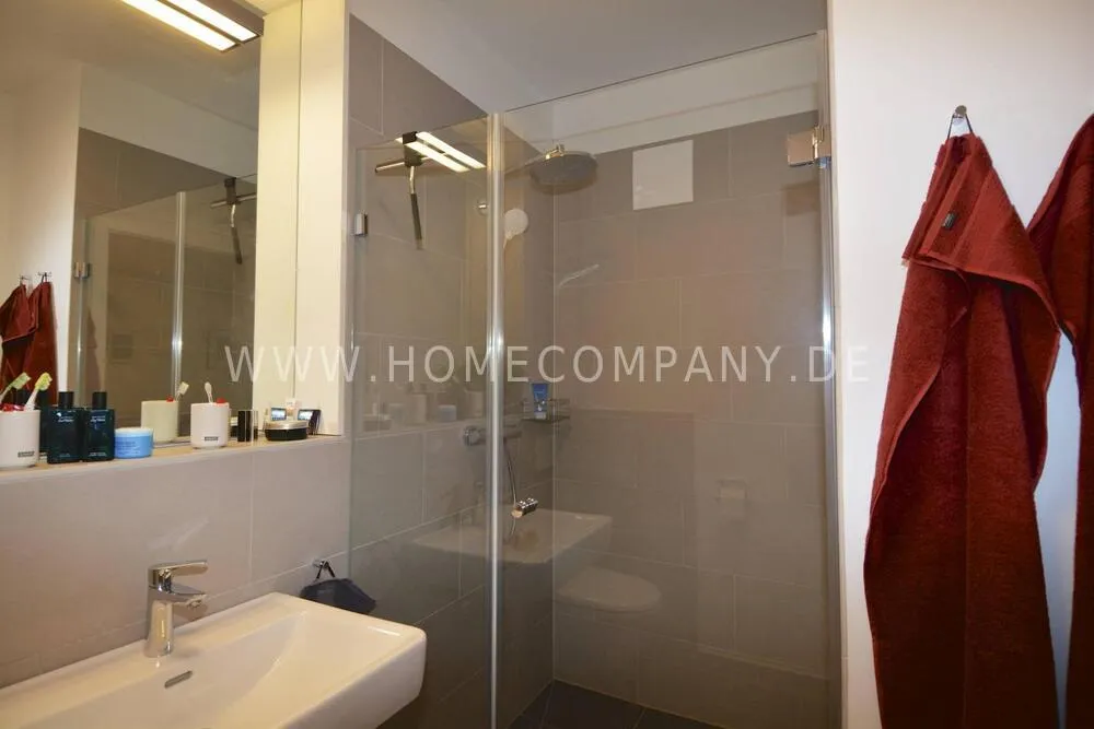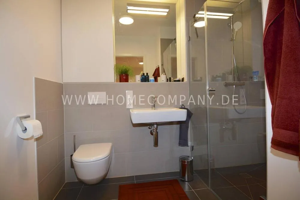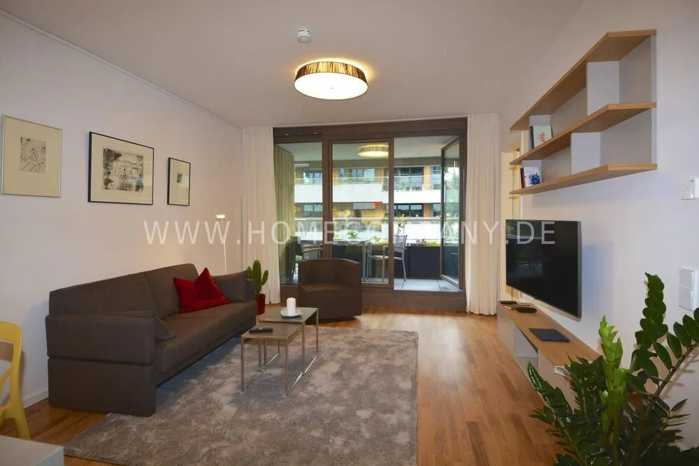 Comfortable, modern furnished 2-room apartment in Pankow. Fully equipped. Spacious living room with open fitted kitchen with dishwasher. Cozy living room with sofa and flat screen TV and access to the balcony. Modern tiled bathroom with walk-in shower cubicle and modern fittings. Bedroom with floor-to-ceiling windows and access to the balcony. The wardrobe offers plenty of storage space for clothes. Large balcony with seating.