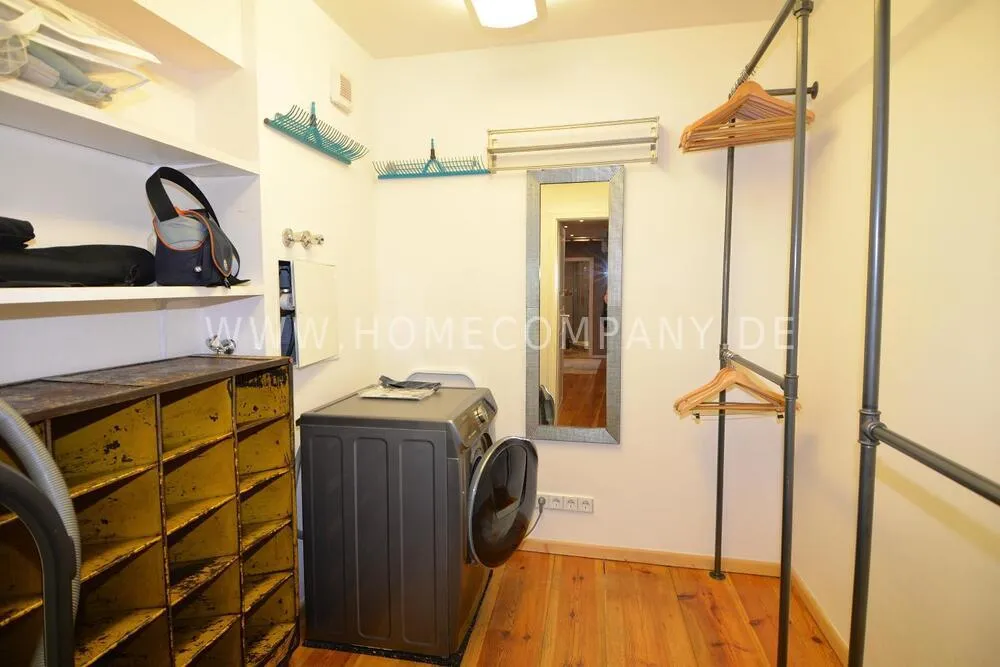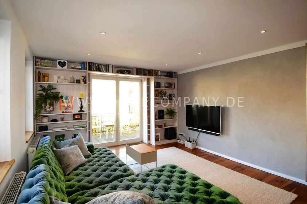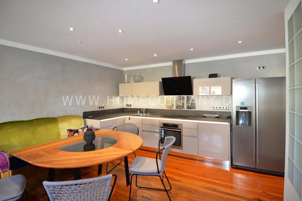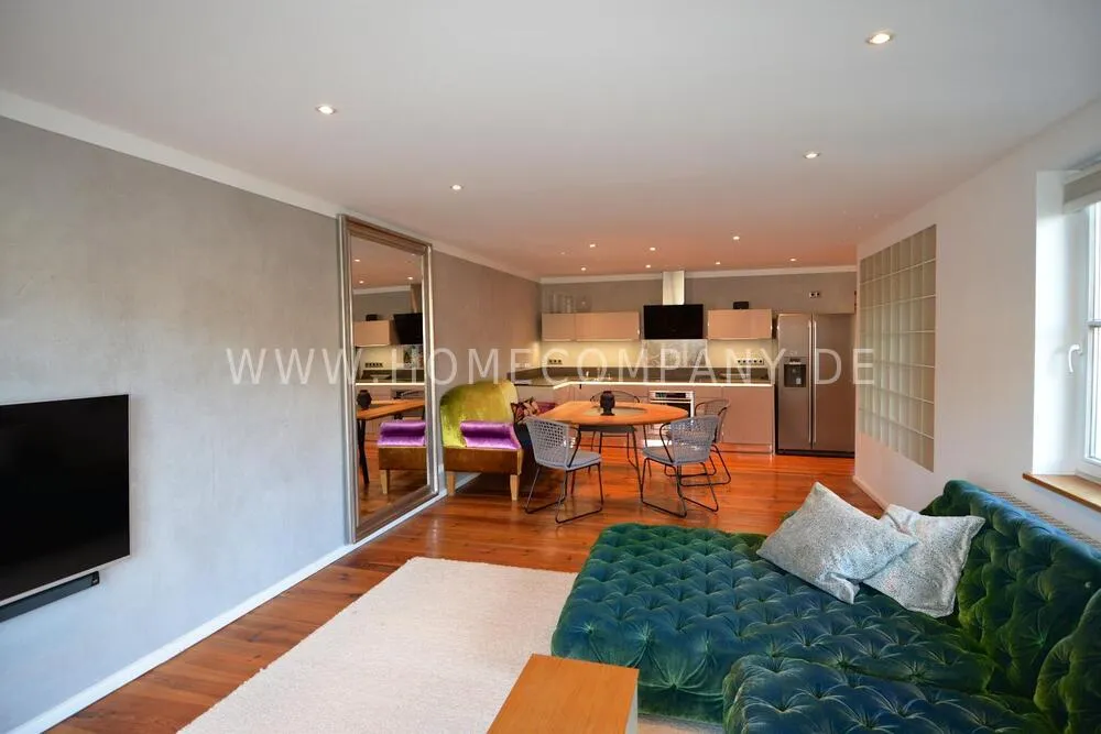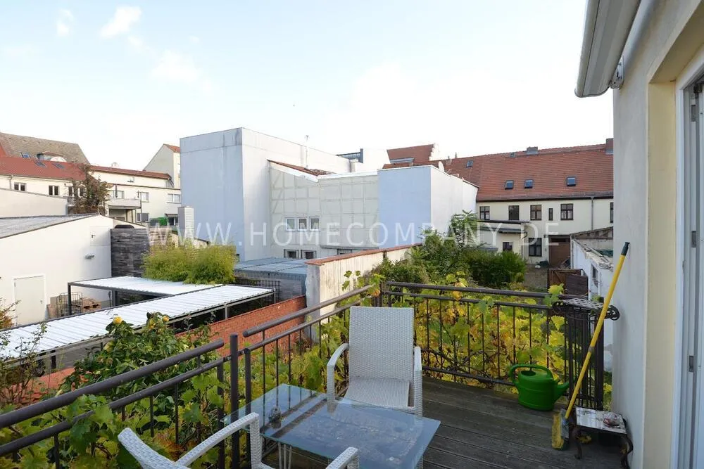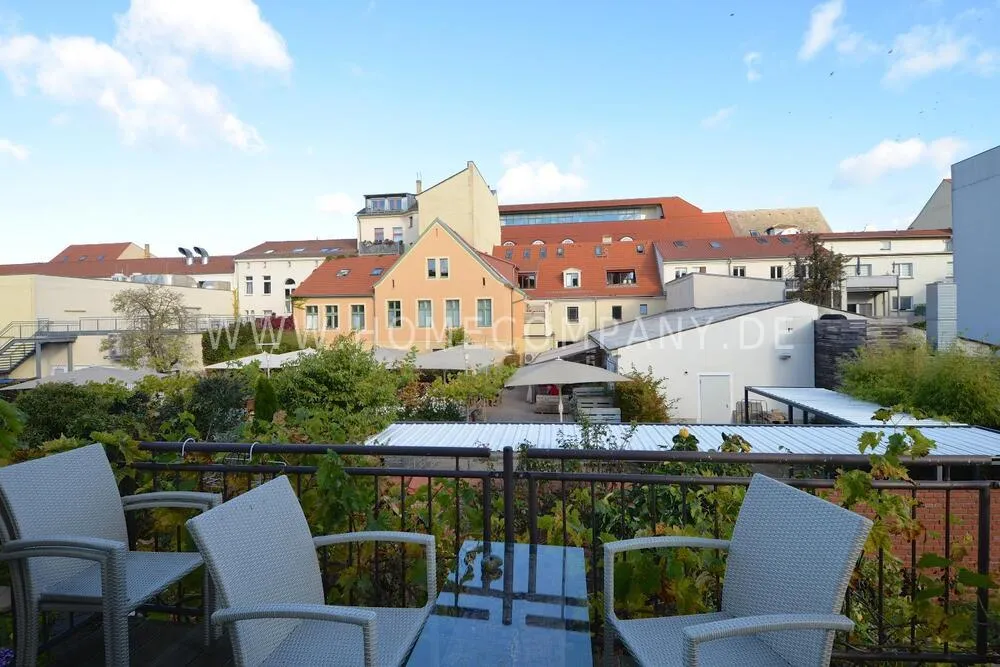 From the open living room and kitchen area you can enter the big balcony from where you can enjoy view of the city of Potsdam.