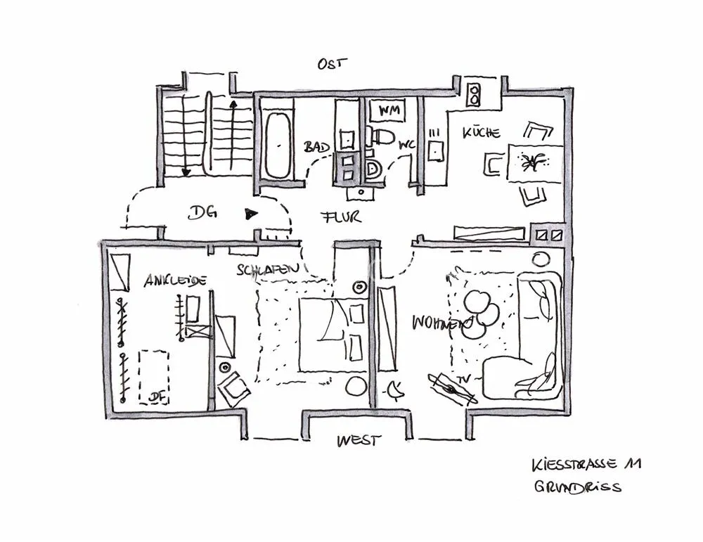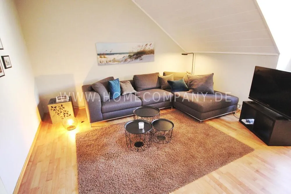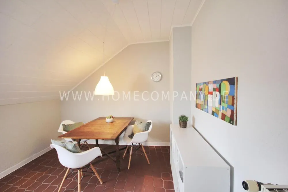 The flat is furnished modern and cozy. Close to the open kitchen you will find a dining table which invites to have guests.