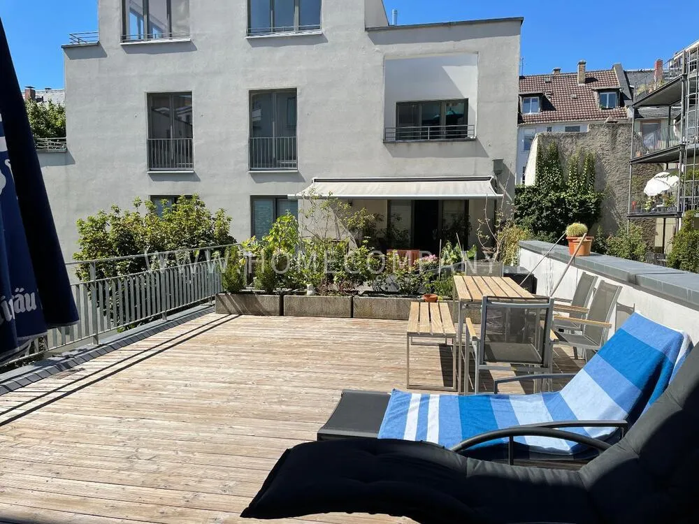 Unique andvery spacious 2-room apartment with a 30 m² sun terrace, fully furnished and equipped for temporary rental