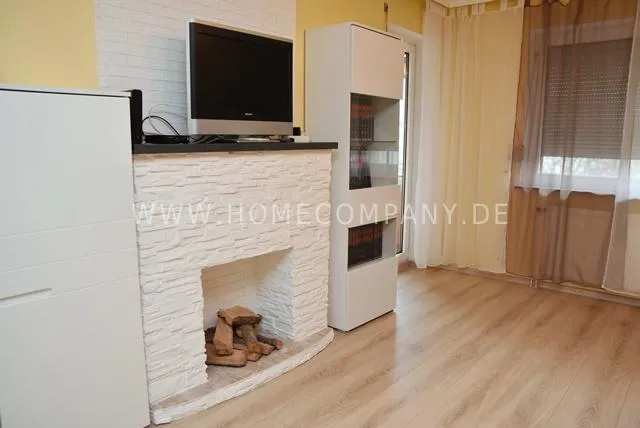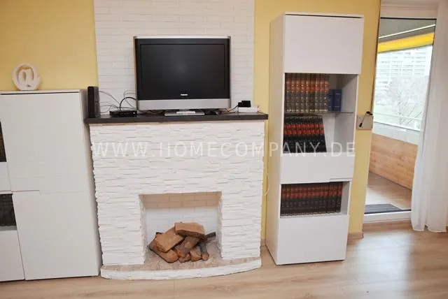 Living room with 2 sofa beds 140x200 cm, coffee table, wall unit with Smart TV, Internet (200MBit) including, decorative fireplace, chest of drawers, access to