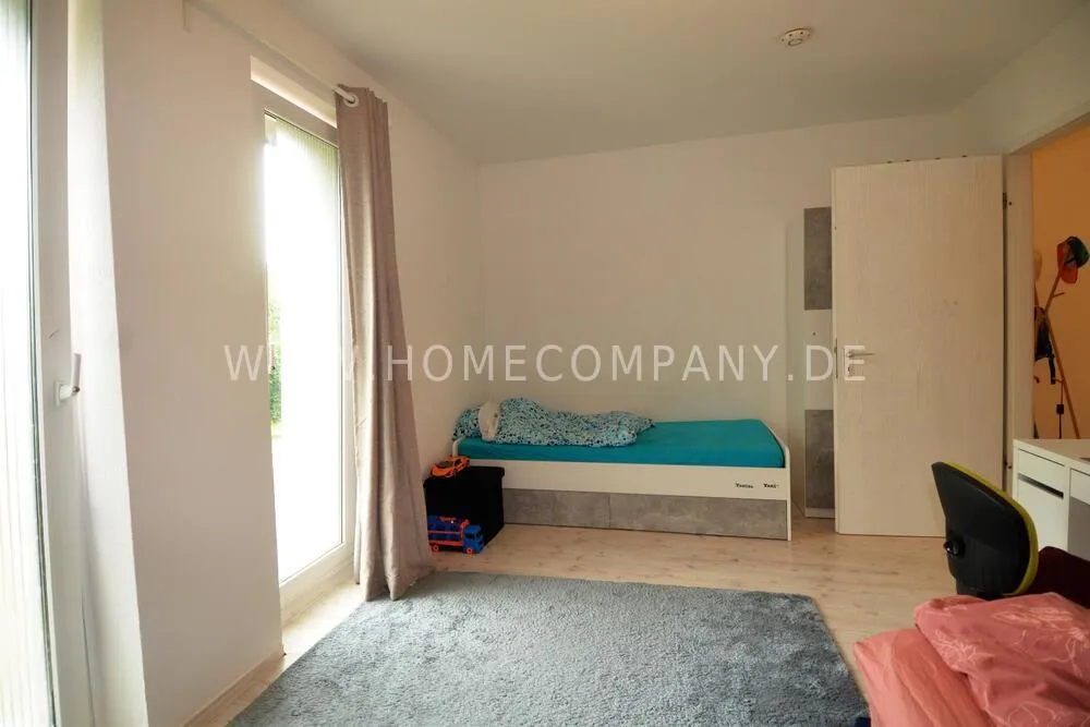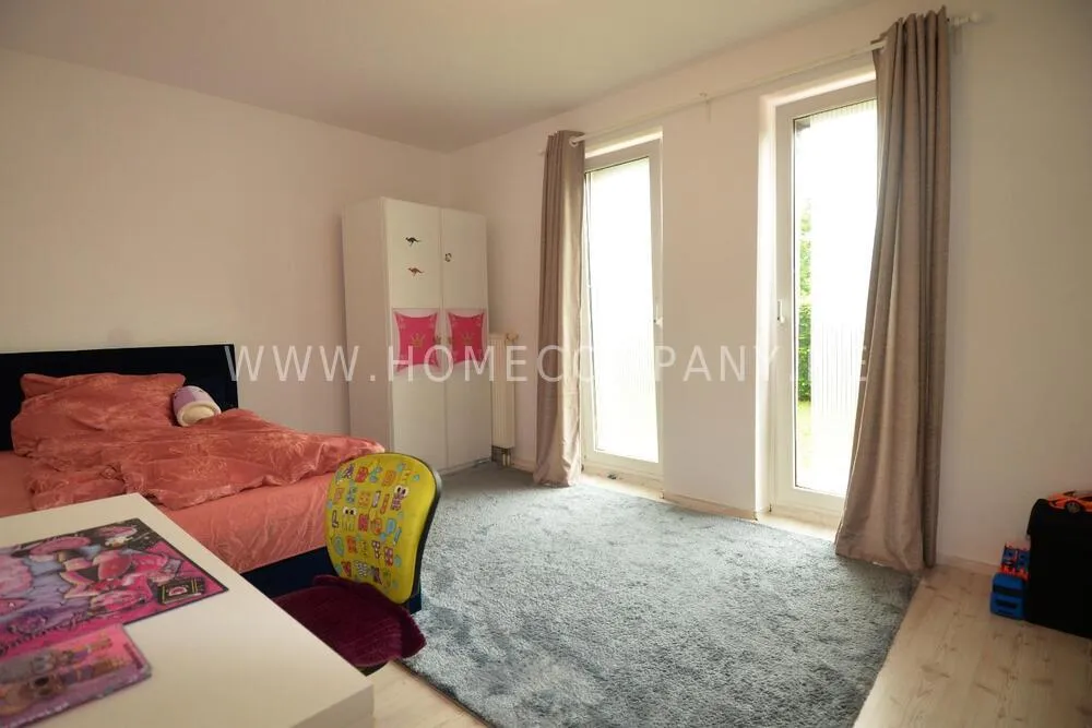 The main bedroom is furnished with a spacious double bed (180x200 cm), a wardrobe, a desk, and a chair - ideal for working or relaxing. The second bedroom features two beds (140x200 cm and 90x200 cm) along with two wardrobes, making it perfect for children, guests, or as a multifunctional space.
