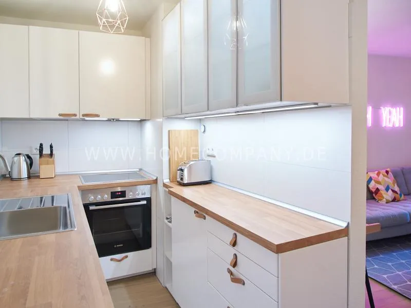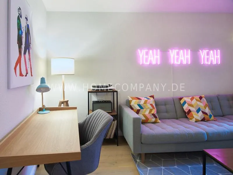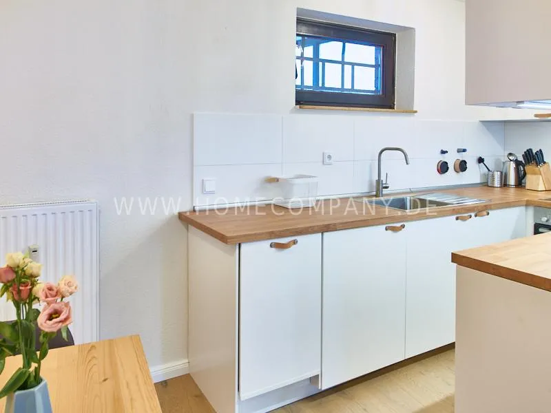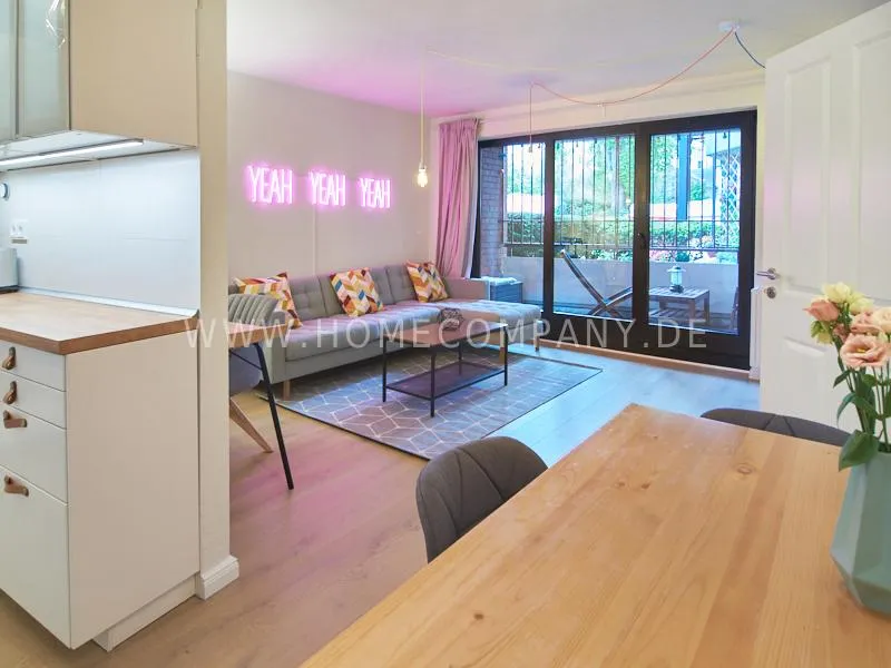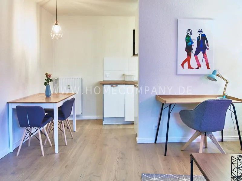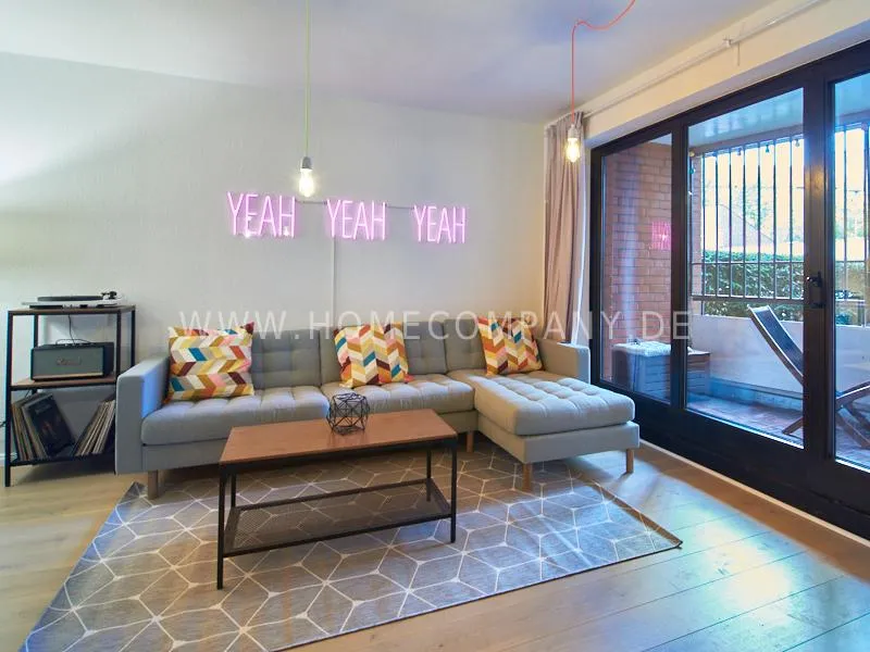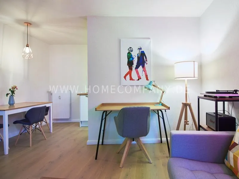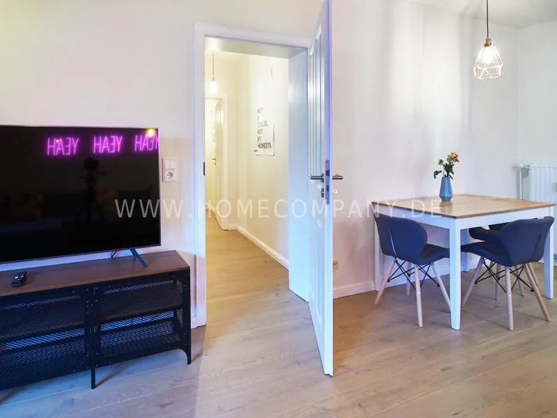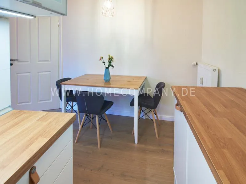 Newly furnished apartment in 2021 in a quiet residential street within walking distance of the Schanzenviertel. The apartment has a pleasant, comfortable floor plan. The living area goes into an open kitchen, which is located around the corner. The dining area is located between the living area and the kitchen.