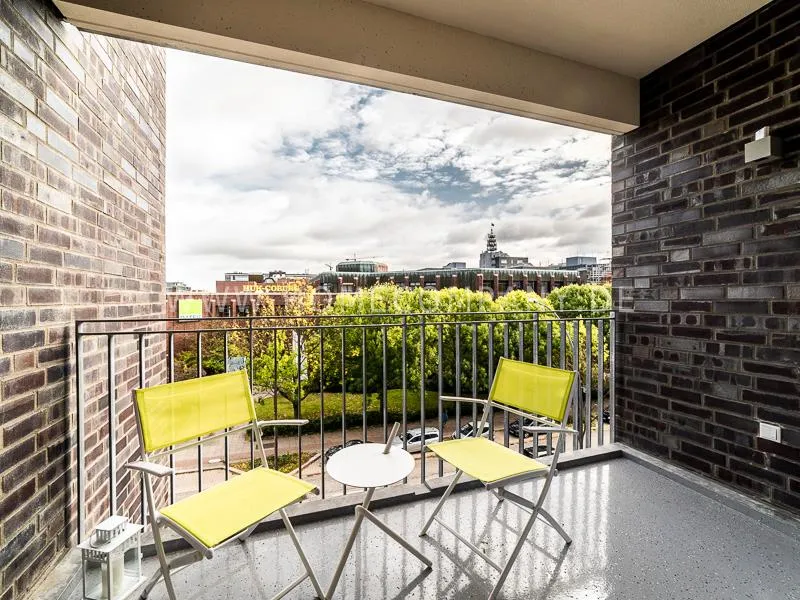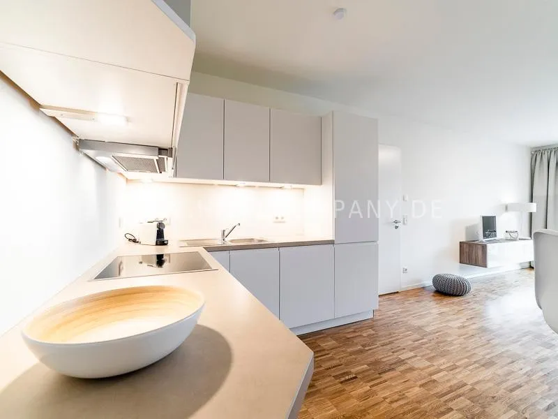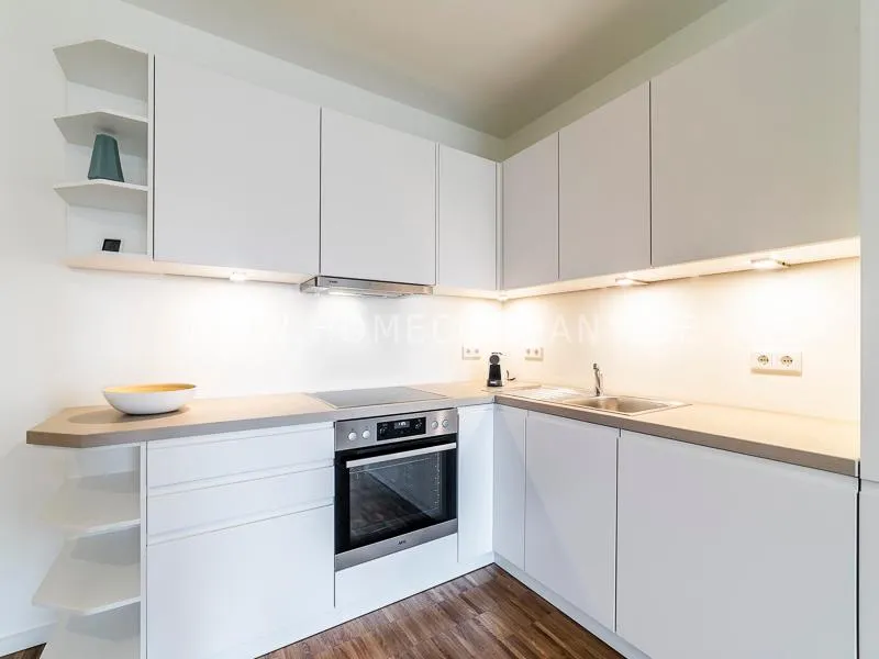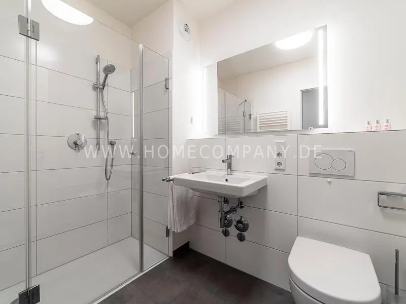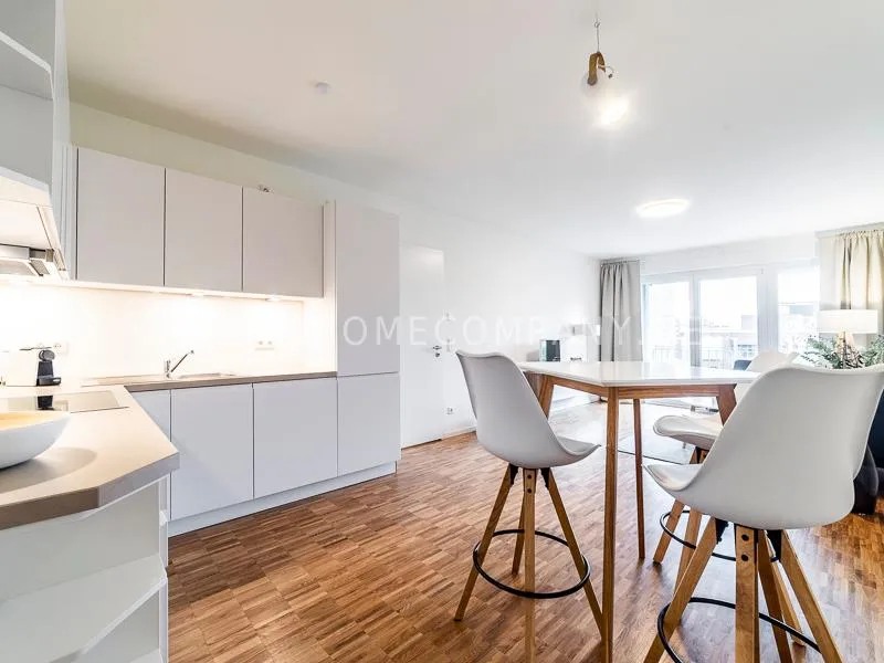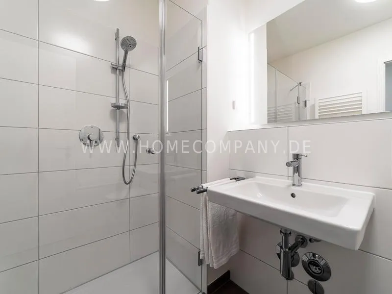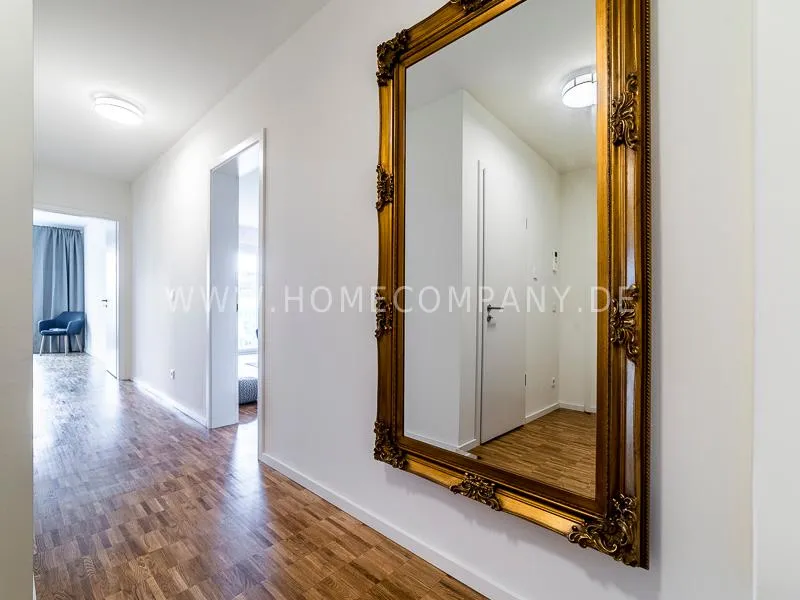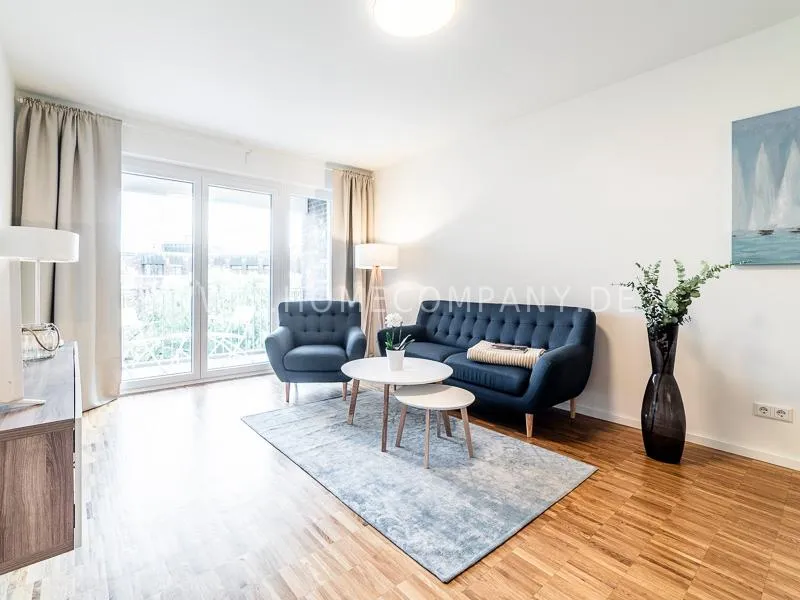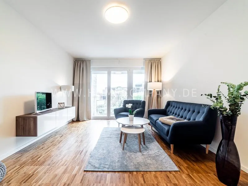 Bright and friendly furnished business flat with a sunny balcony overlooking the canal. The well thought-out floor plan typical of a new building, the floor-to-ceiling windows, underfloor heating and parquet flooring ensure pleasant living comfort. The apartment has a fully equipped "Nolte" fitted kitchen, which is directly adjacent to the dining area. There is a WiFi-enabled LED & Full HD Smart TV from LG in the comfortably furnished living room. In addition to a 1.40mx2m bed, the bedroom offers a spacious wardrobe and a great view of Hamburg's most beautiful tributary of the Elbe, called Bille, as well as the wonderful morning sun to wake up. The bathroom impresses with an oversized illuminated crystal mirror by Zierath, a glass shower cubicle by "Oberwasser" and a large bathtub. The washing machine is in the utility room.