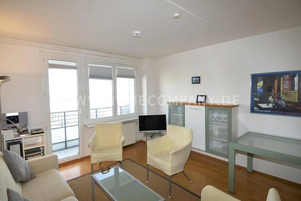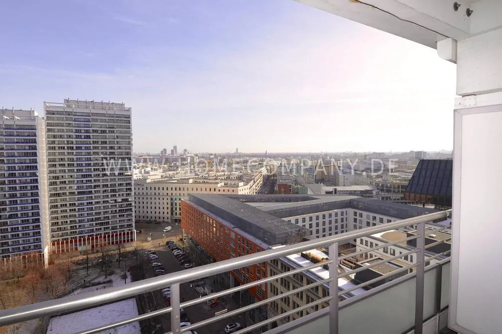 The apartment of around 50 m² in Berlin Mitte, is located on the outstanding 18th floor with a unique view of the "Alex" and the whole city. Despite the urban location, the apartment is very quiet and comfortable.