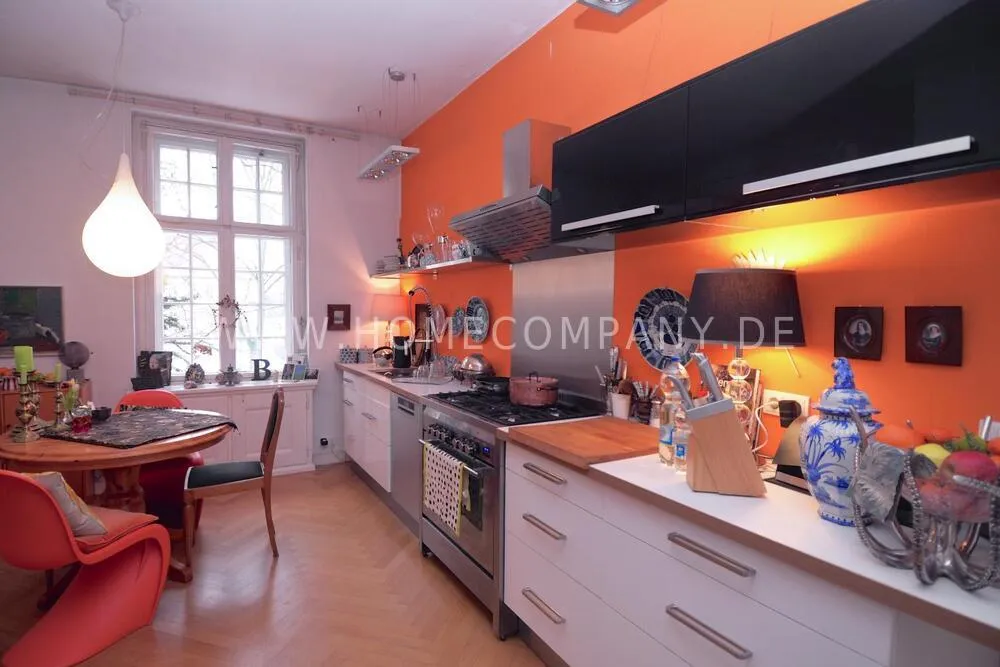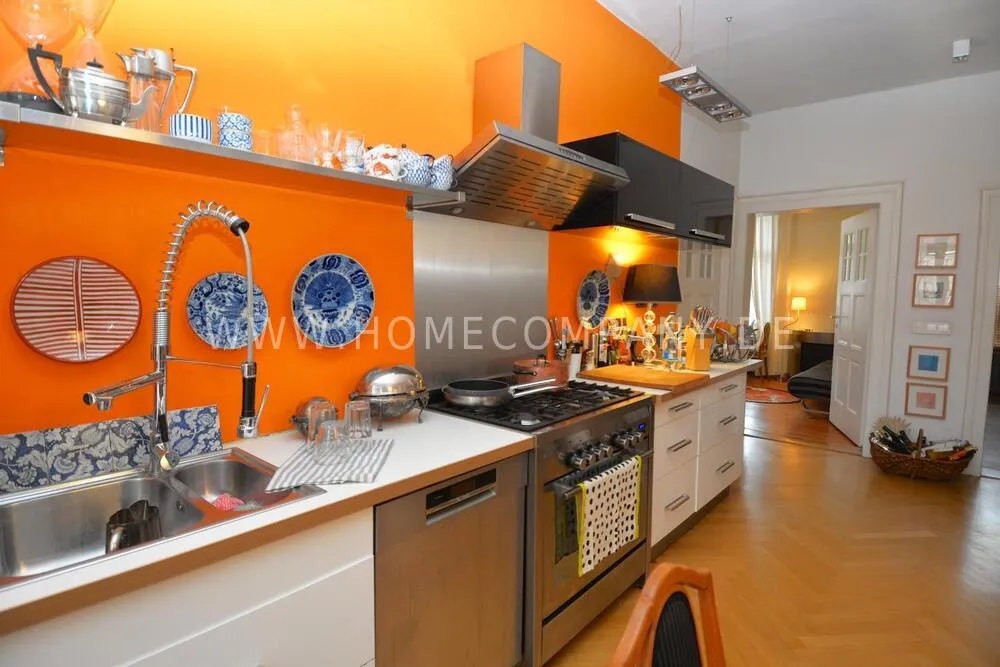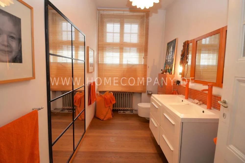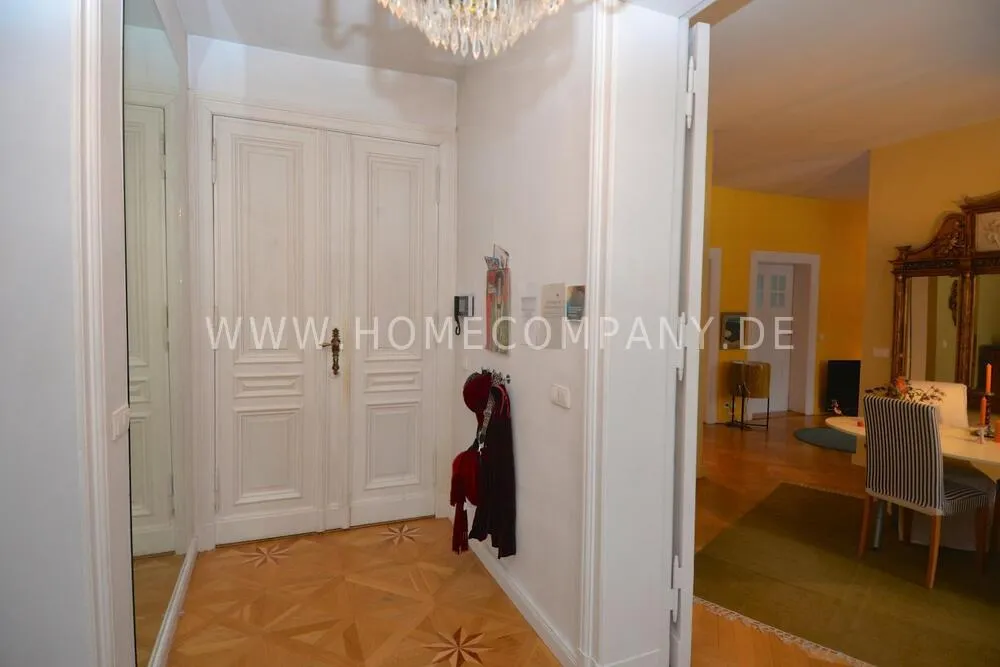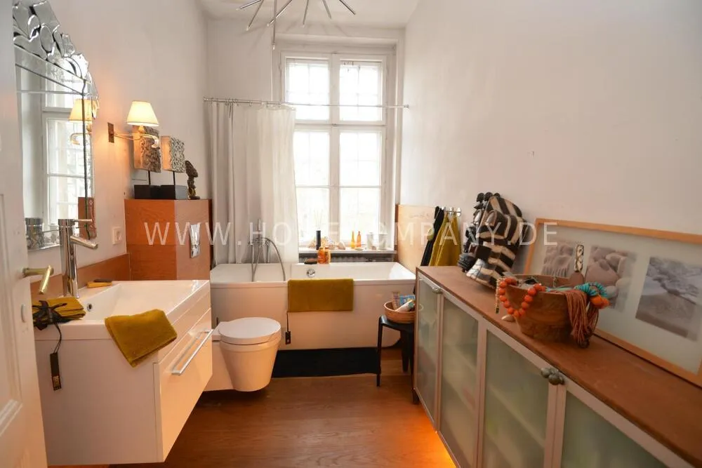 This exceptionally spacious, fully furnished three-bedroom apartment is located in a charming historic city villa within the highly sought-after Ludwig Hoffmann Quarter in Pankow. The protected heritage ensemble, set within a generous park-like garden, offers a rare combination of urban convenience and peaceful surroundings.