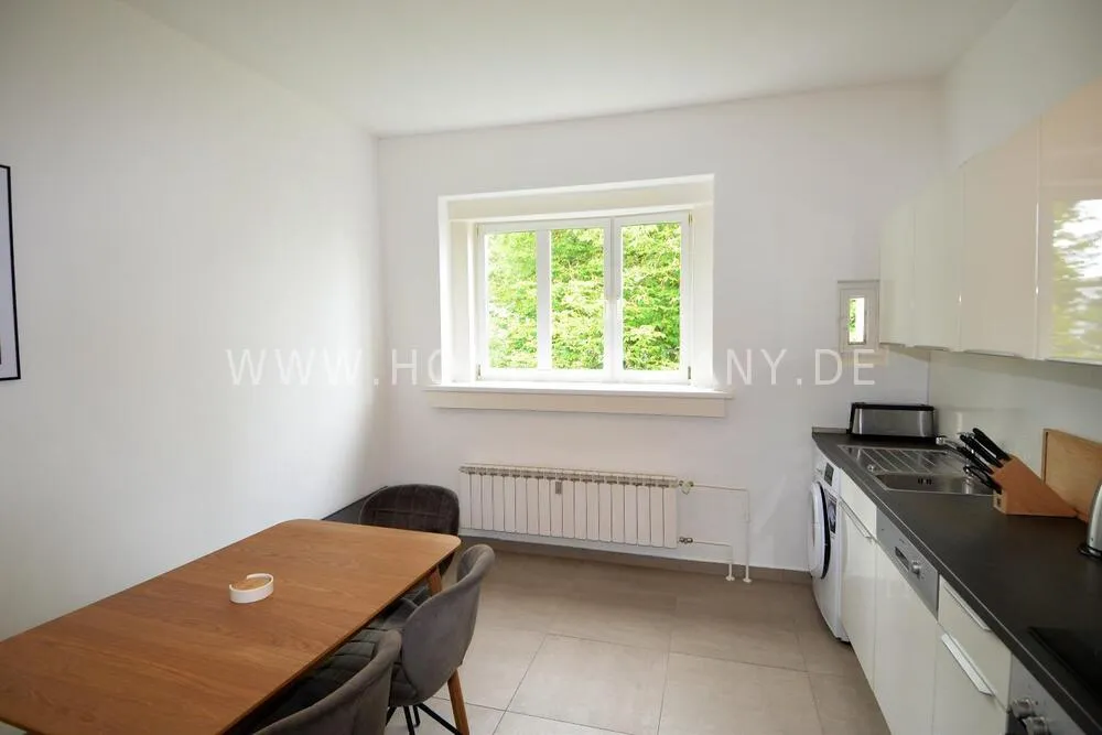 The apartment is furnished and has a bedroom and a living room. Washing machine and dishwasher are available. In the living room there is a dining area and a large, comfortable sofa. The kitchen is very spacious and offers another, small dining table.