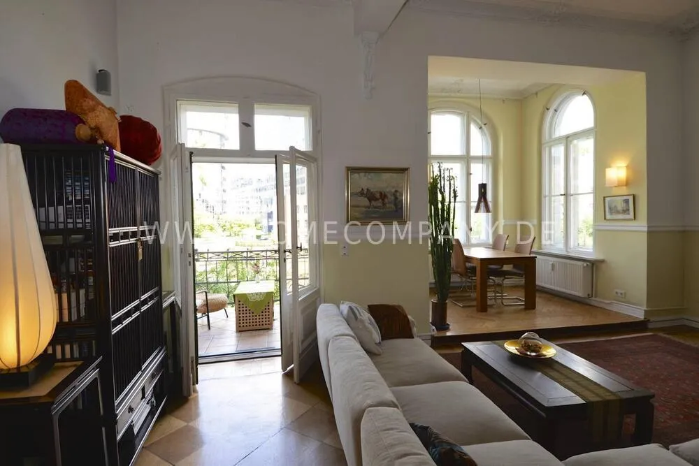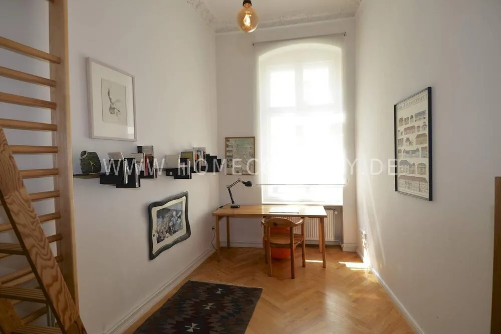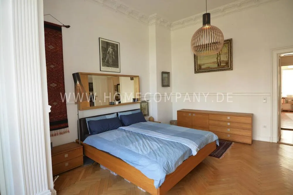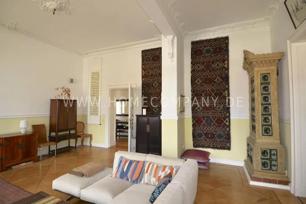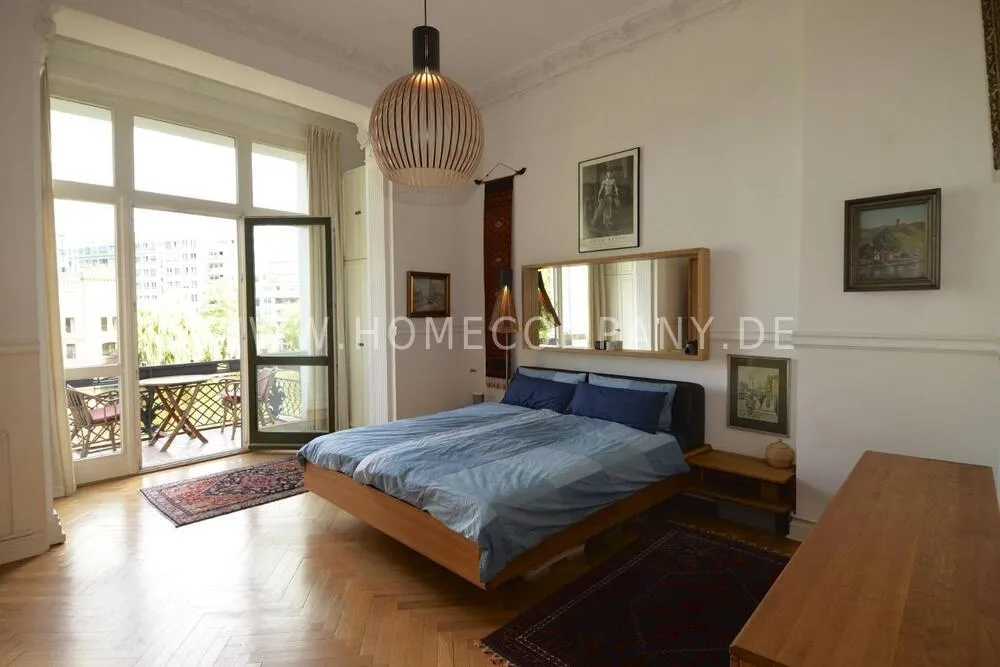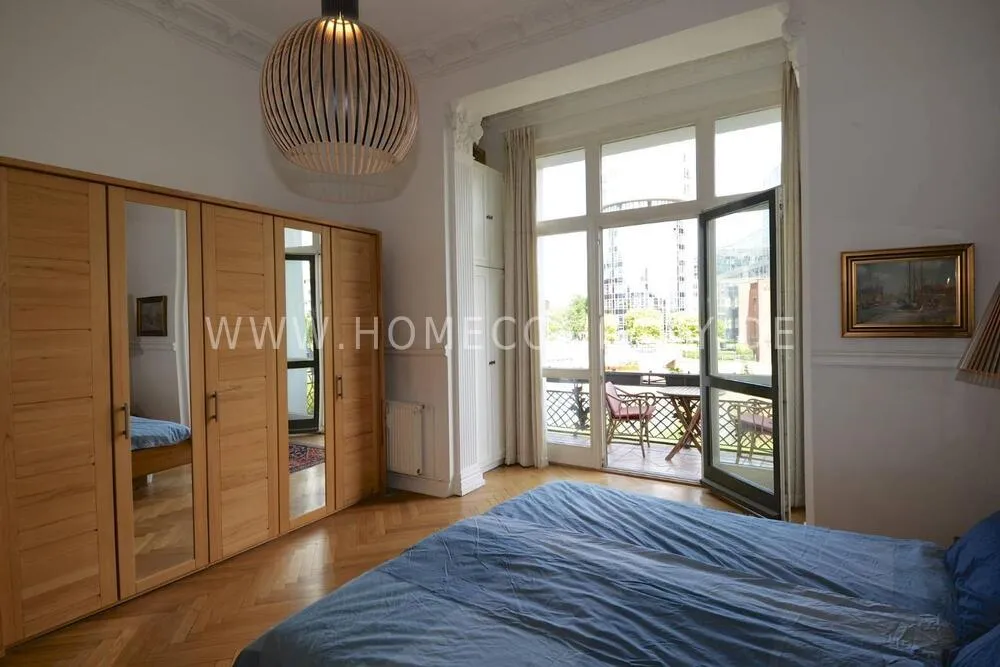 Unique bel etage apartment in a listed old building from 1885, with beautiful stucco ceilings, 3.80 m room height and parquet floors in all rooms. Fantastic view over the Spree from two balconies. Two bedrooms (180x200 & 140x200). Two jobs. Fast internet. Fully furnished and equipped. Piano available. Personal and tasteful decoration. One of the most beautiful locations Berlin has to offer.