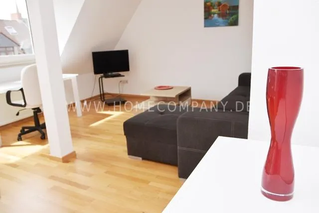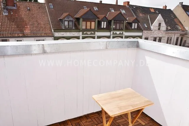 Bright attic flat with balcony, central location.