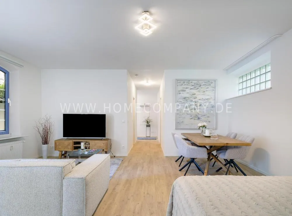 Situated directly on one of Hamburg’s most renowned streets, this apartment combines a quiet yet central location with exceptional living comfort. It has been extensively renovated and designed in a maritime style, creating a unique atmosphere. Flooded with natural light, the open rooms with generous window fronts provide a bright and welcoming ambiance. Custom-made blackout curtains in front of the glass blocks as well as electronic blinds on the large courtyard-facing windows ensure optimal light and privacy control.