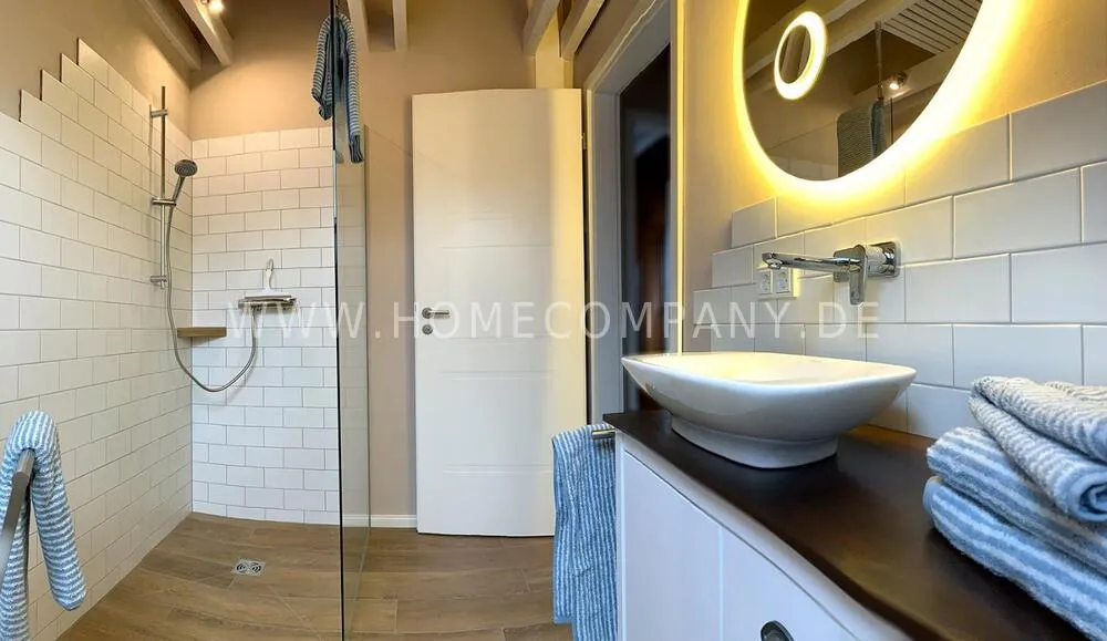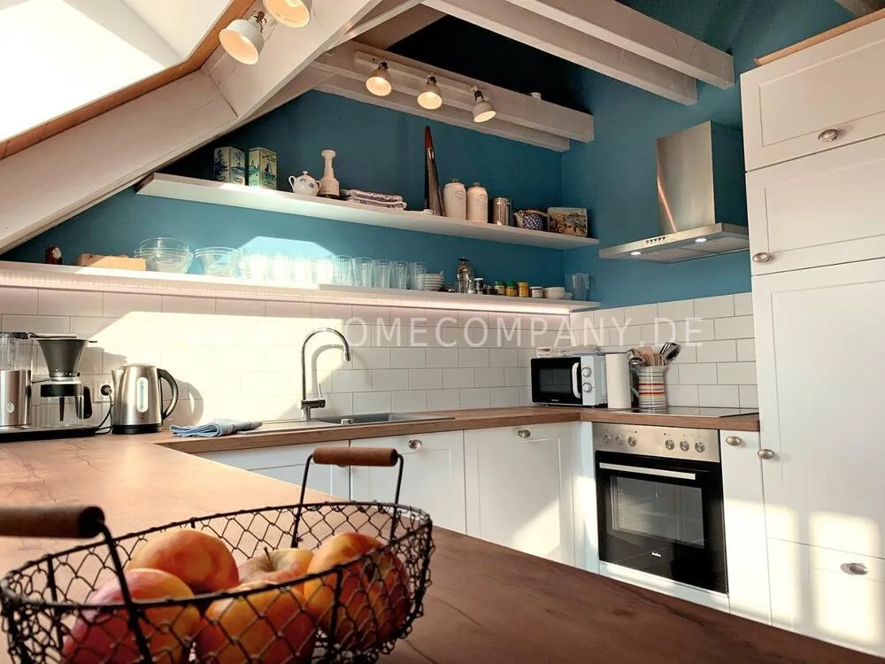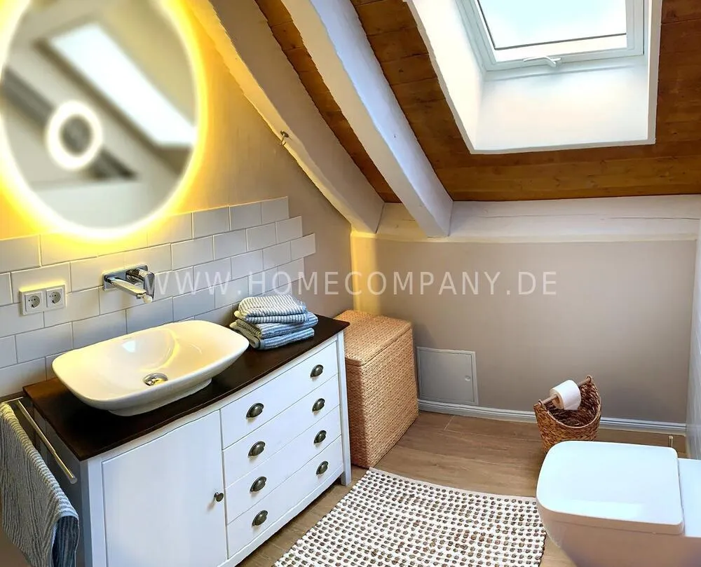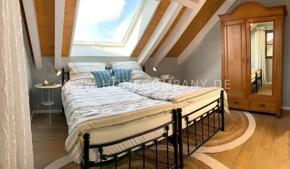 The light-flooded attic apartment is located about 8 km south-west of Potsdam directly at the Caputh Castle Park. It is located in an absolutely quiet cul-de-sac and is lovingly furnished in Scandinavian country style. An apartment to feel good. Of course with super fast internet 250 Mbit/sec. Supermarket and bus stop can be easily reached on foot.