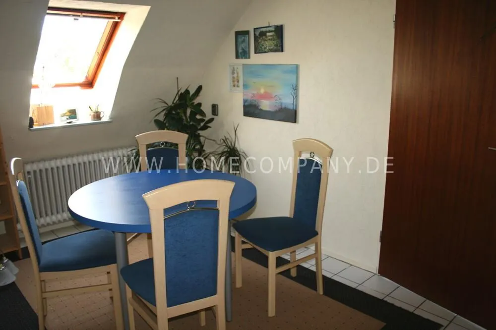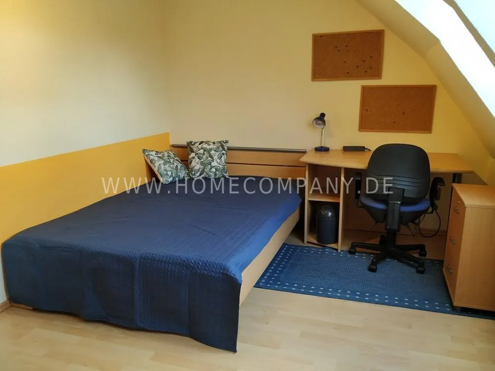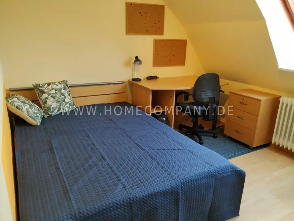 The room is part of a spacious and well lighted 89 sqm roof apartment. Amenities include a bathroom with a tub, a fit-in kitchen, dischwasher, washing machine, coffee maker, a shared dining area and a hallway. The nice room is equipped with a queen size bed, wardrobe, desk, desk chair.