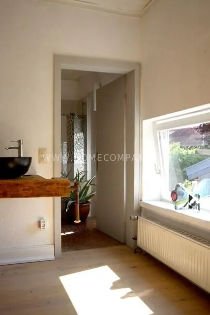 Good transport connections to the bus stop 400 m and motorway (1 km), to the train station (3 km), to the airport (13 km). Metronome direct connection to the exhibition grounds (approx. 20 min). Good running opportunities in the nearby landscape conservation area. In the immediate vicinity there are various restaurants and good shopping facilities. It is only a few minutes' walk to the town centre.