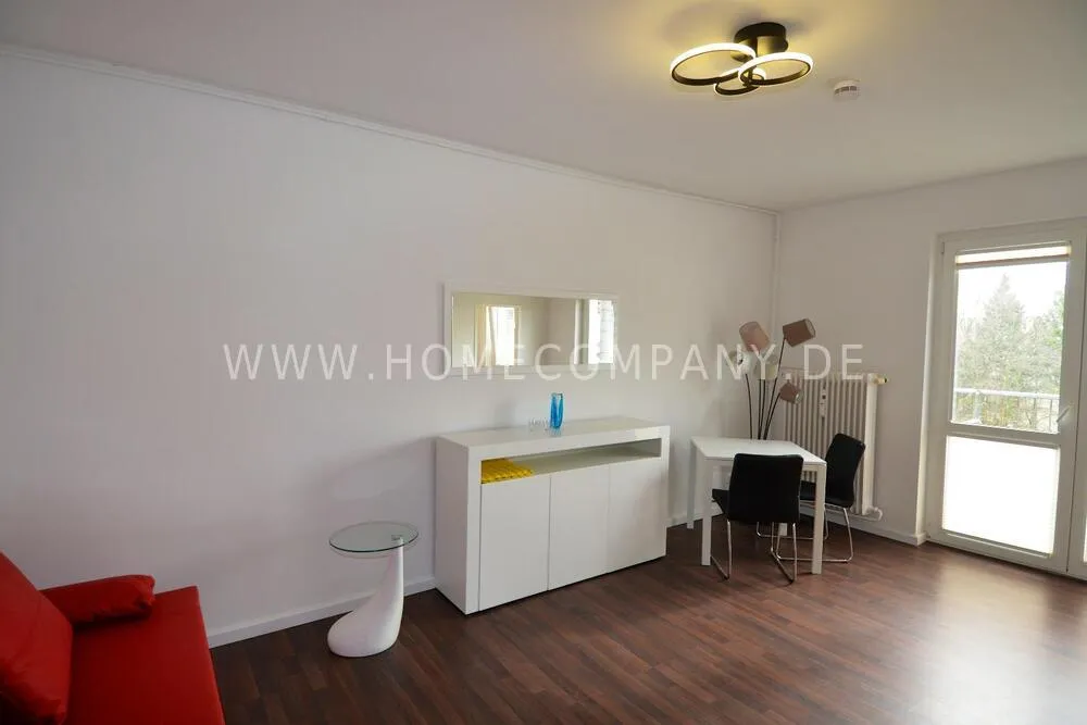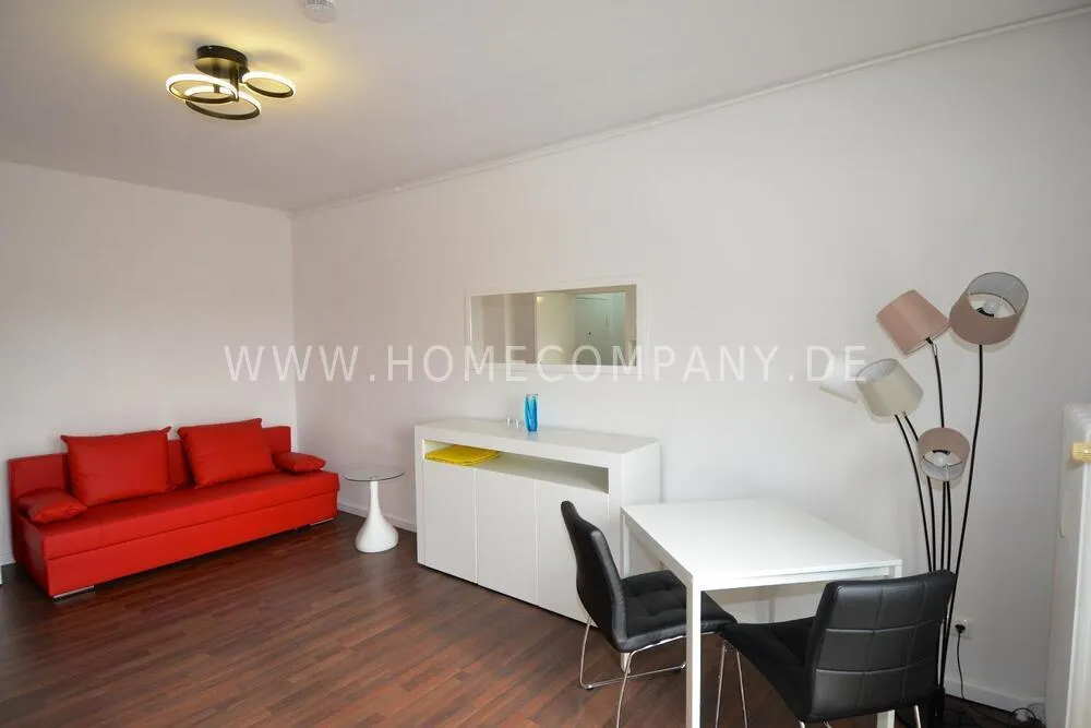 Welcome to this charming 1-room apartment in Schöneberg! Enjoy a tranquil and newly renovated living space with a green view, situated near Winterfeldplatz. The balcony facing south provides a peaceful retreat, and inside you'll find laminate flooring, a washing machine, Smart TV, and a complete set of bed linens and towels. The living-bedroom features a comfortable sofa bed (140x200), and the modern bathroom adds a touch of sophistication. With an included internet flatrate, you're well-connected. Just a 5-minute walk leads you to the nearby subway station, making commuting a breeze. Welcome to your cozy haven!