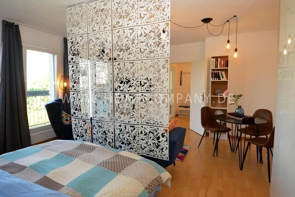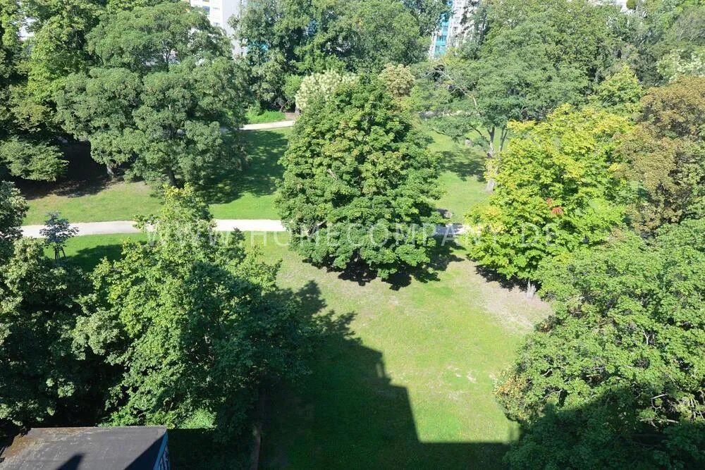 Situated on the 5th floor of a fully renovated building from 1900, the apartment is easily reachable by elevator. All windows and the spacious balcony provide a stunning view of a green park.