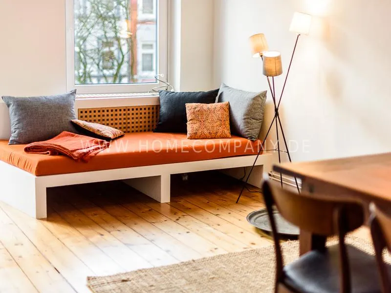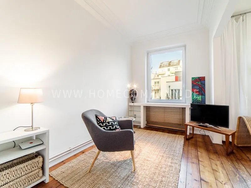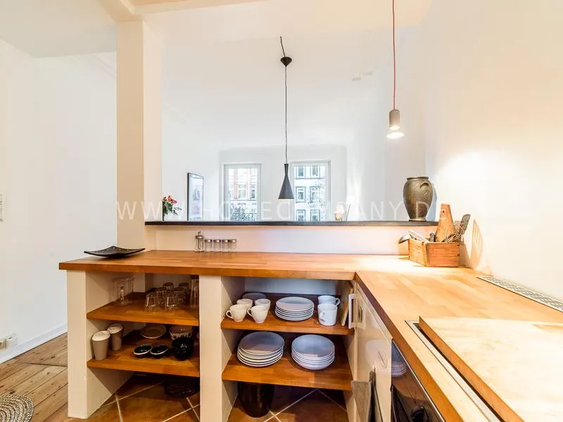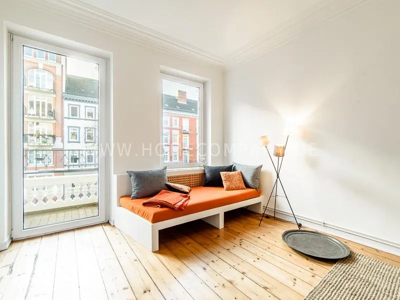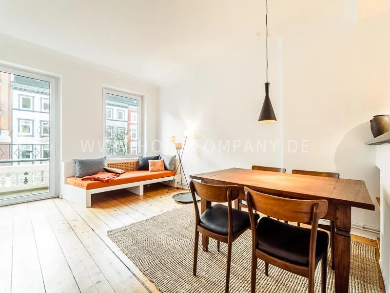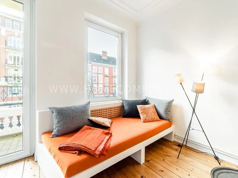 Lovingly, charming renovated apartment with charm in a quiet location in the lively, scenic district Schanzenviertel. The apartment has a large kitchen, many high-quality fixtures, a well-laid floor and a balcony. The bed is 1.60 wide. The apartment has morning sun from the east, in the afternoon from the west. Very central location with various outings and shopping possibilities in the immediate area.