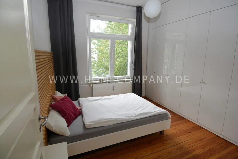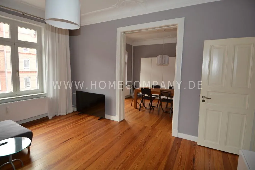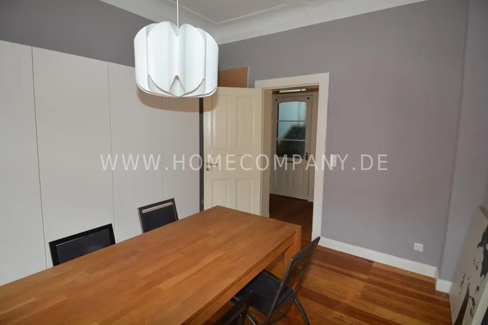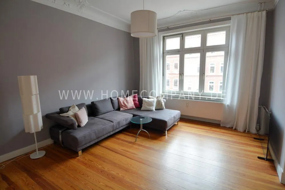 Furnished 3-room old apartment in a listed ensemble on the 2nd floor of an apartment building in Kiel, Schreventeich district, with short distances to both the city center and the university.