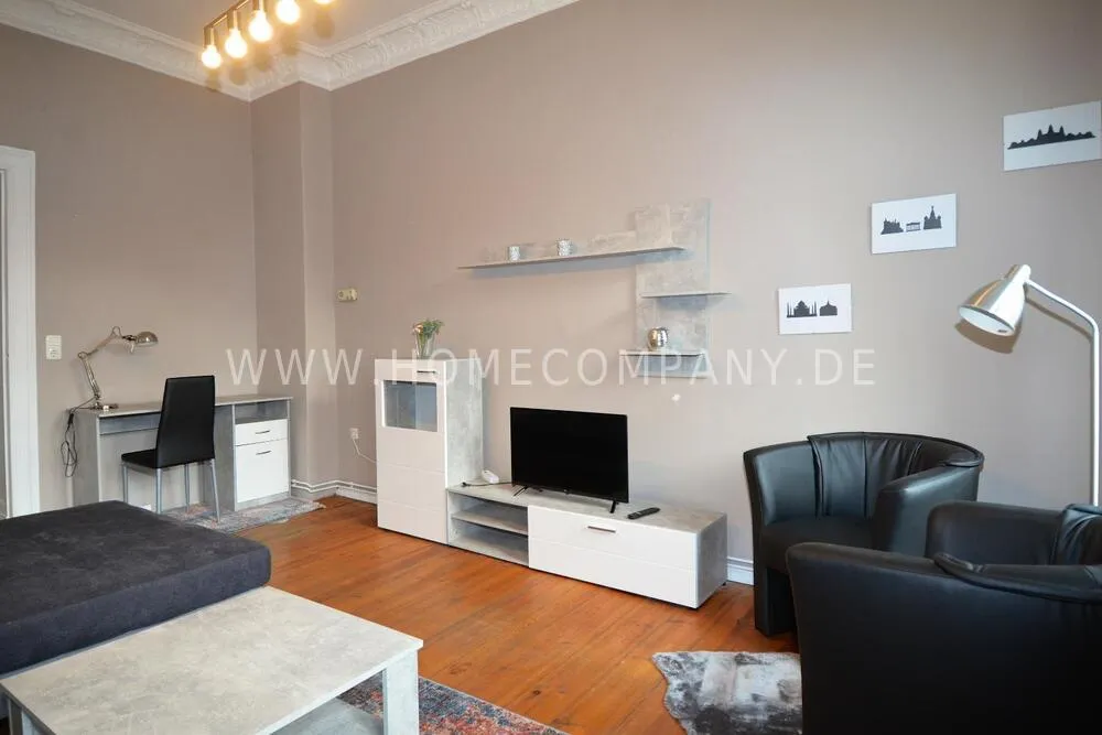 Fully furnished 2 room apartment in the heart of Prenzlauer Berg with balcony, bathroom with bathtub, TV, W-LAN. Bright living room with corner sofa, dining table and TV. Great location in Prenzlauer Berg with lots of places to go out and shop. Eberswalder Str. underground station a few minutes' walk away.