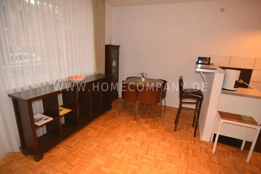 This modern and well lighted one bedroom apartment comes with an extra large balcony, a new kitchen, a modern bathroom with a shower, a good sized living room and a cosy and quiet bedroom. Amenities include gorgeous parquet floors, cable-TV, doubelbed, large wardrobe, desk.