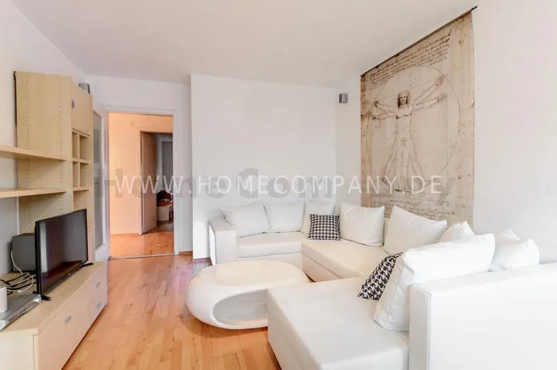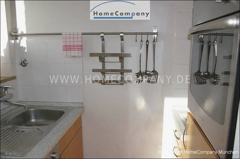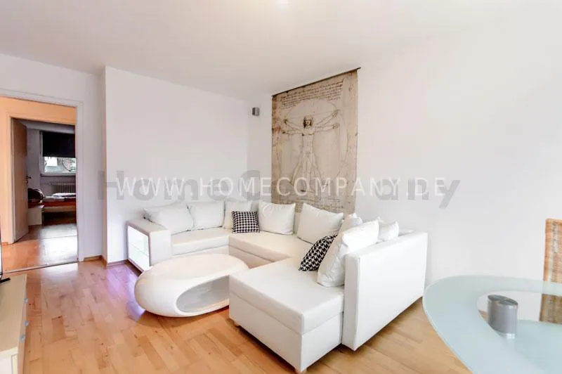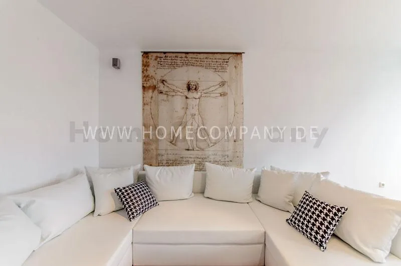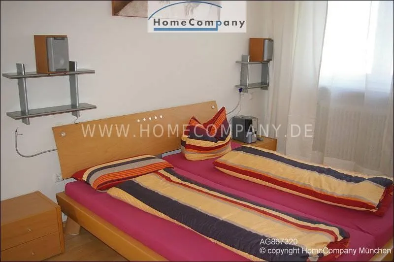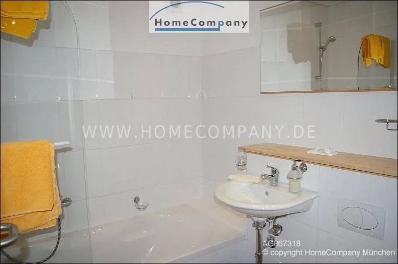 Classy furnished 2-room flat (type "Hülsta NOW") with balcony; Schwanthalerhöhe. 2nd floor with lift. Sunny modernly furnished living room with a white angle-type sofa, large table, wall unit with glass cabinet and sideboard. Technical equippment: Stereo-TV, DVD with CD, CDRW, MP3 and disigner audio system. Bedroom with queen-size bed (140x200cm) with mattress of natural rubber (suitable for allergic subject) and wardrobe. Fitted kitchen with window, equipped with electric stove and oven, dish washer, microwave, and large fridge. The bathroom is appointed with a bathtub with a shower cabin of glass. Coin-operated washing machine in the laundry room of the house. Telephone and internet available on request. Internet-surcharge: 25,00 EUR + VAT. Underground parking space optional.