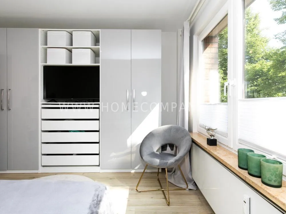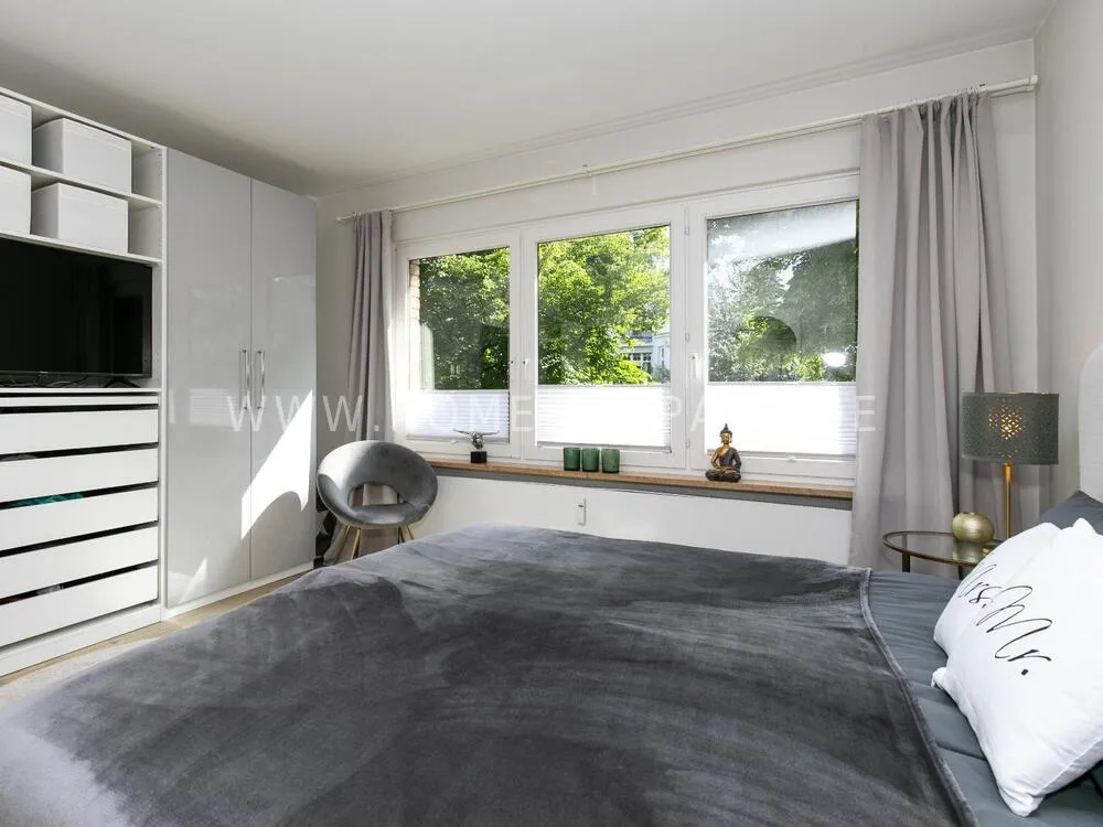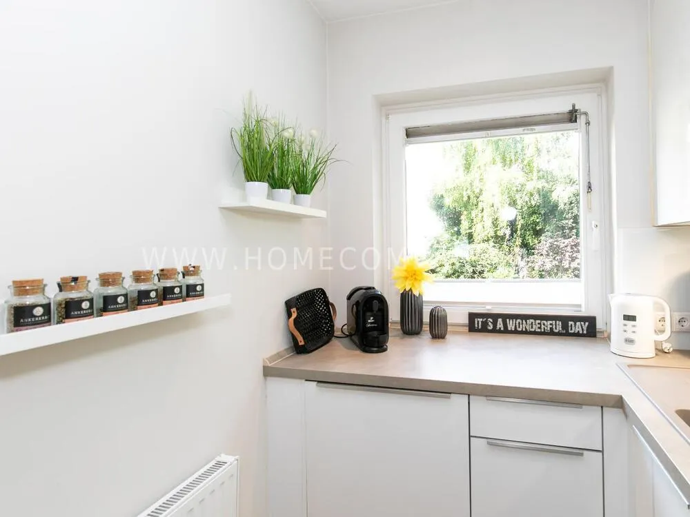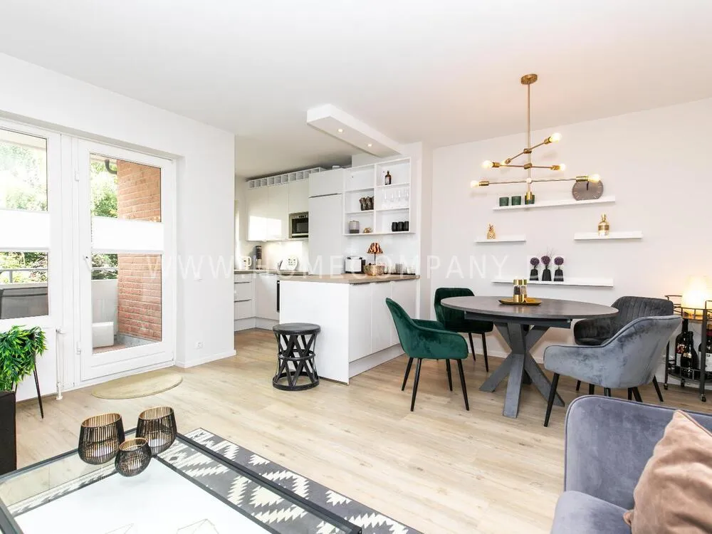 Furnished flat - completely modernized in 2024 with top standard in a great residential area. The Alster can be reached on foot in just 3 minutes. Numerous shops, restaurants and bars are in the immediate vicinity.The flat has a high-quality vinyl design floor. The spacious living area with open kitchen and dining area invites you to relax. A small highlight is the adjoining balcony, which faces the quiet inner courtyard.