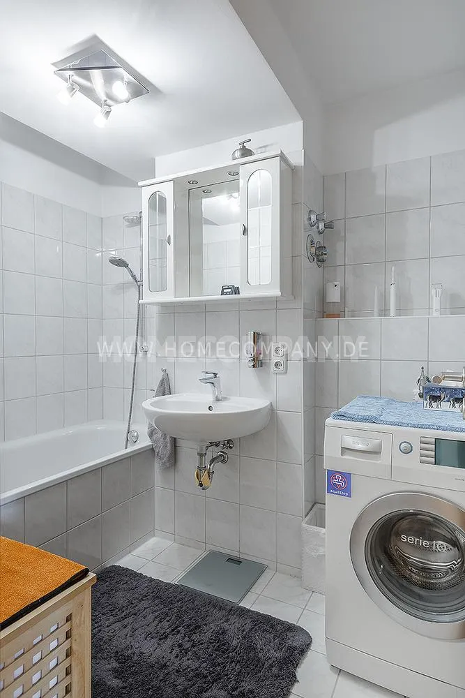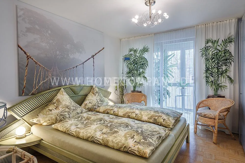 Comfortably furnished 3-room apartment with balcony and winter garden in Berg am Laim. 2nd floor with elevator. The living room is furnished with a sofa bed, TV and dining area for up to 4 people; from here access to the balcony. The open kitchen is equipped with everything you need daily, e.g. dishwasher and various kitchen utensils. Bedroom with double bed and large closet; from here access to the winter garden.