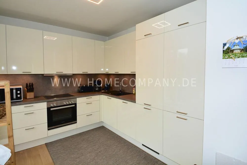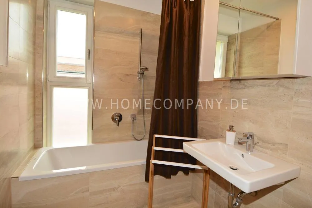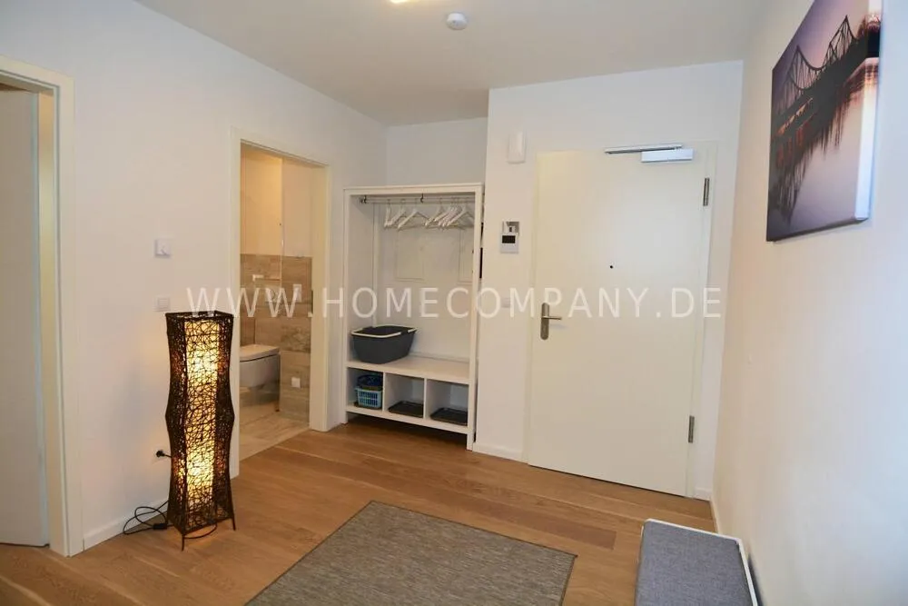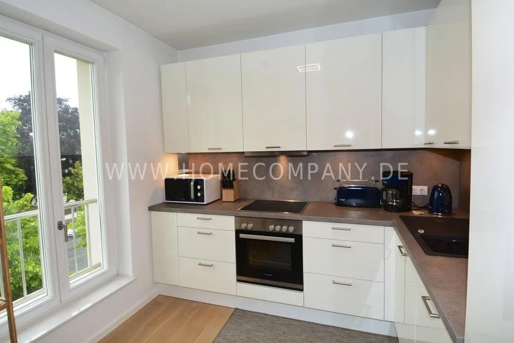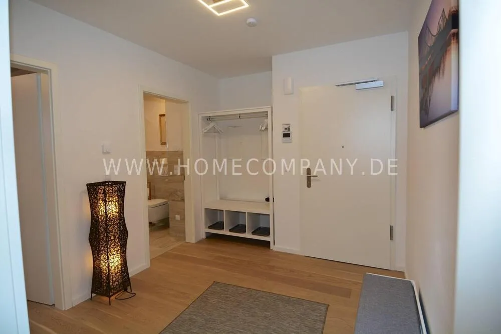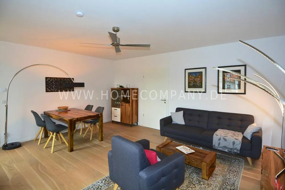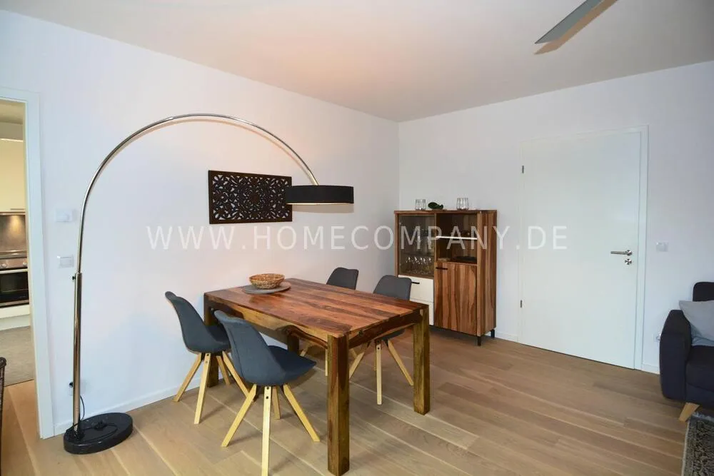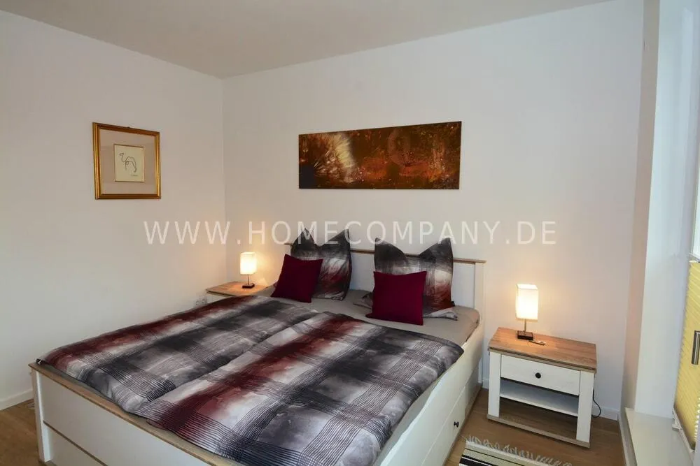 Comfortably furnished 2-room apartment in Skandinavian style with covered balcony. Very inviting ambiente with fitted kitchen including a dishwasher and microwave, cozy bedroom with boxspringbed and a large wardrobe with plenty of storage space. Nicely tiled daylight-bathroom with tub. Modern underfloor heating throughout the apartment. Internet is also available. The washing machine is located in the laundry room. Underground parking space included.