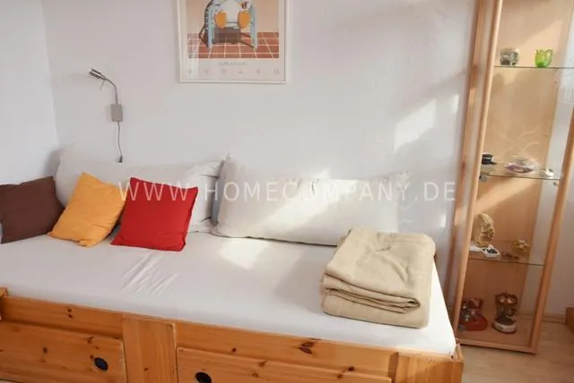 Office / guest-room with bed 90x200 cm, armchair, small table, desk with chair, WLAN, built-in cupboard.