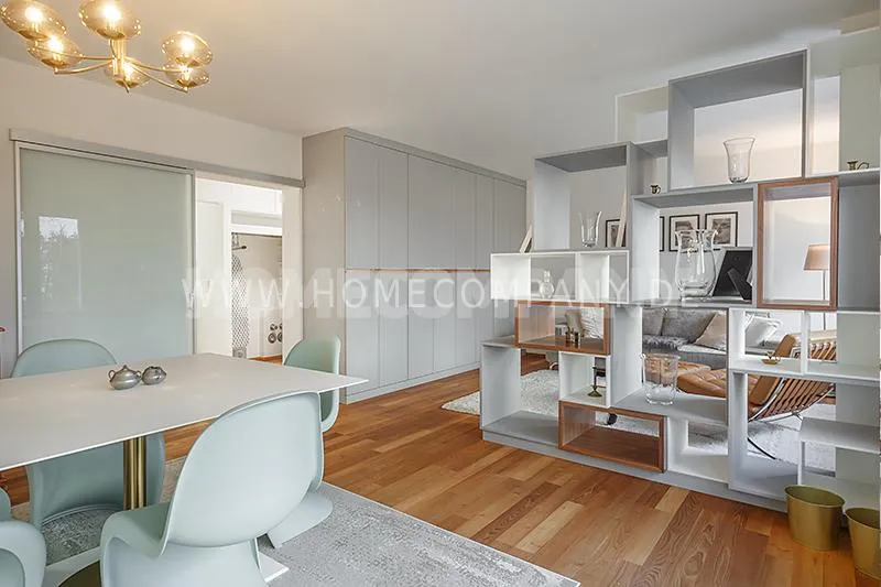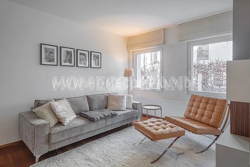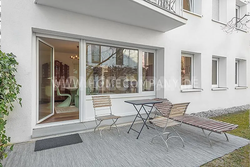 Exclusive and very high quality equipped 2 - room garden apartment in Altbogenhausen! The apartment impresses especially with its pleasant mix of design classics and practical equipment. The living / dining area is furnished with a sofa landscape, LoungeChair and a dining area for up to 4 people. From here access to the terrace with garden. The modern, separate kitchen is fully equipped with everything you need on a daily basis. Bedroom with boxspring bed and built-in wardrobe. New bathroom with bathtub.