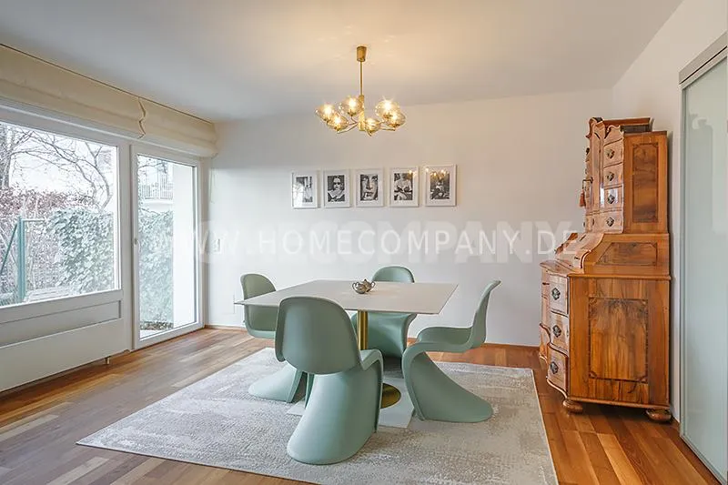 The apartment offers electric shutters and offers all the amenities of urban living, but is still in a quiet location. A stone's throw away from the Isar and the English Garden. Idyllically located in the rear building of a very well maintained ensemble. Beautiful southwest terrace, with tasteful garden furniture and lounger by Weishäupl, which invite you to relax.