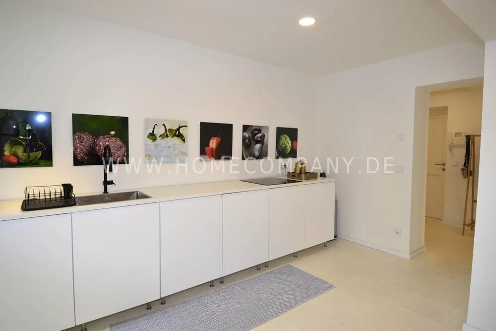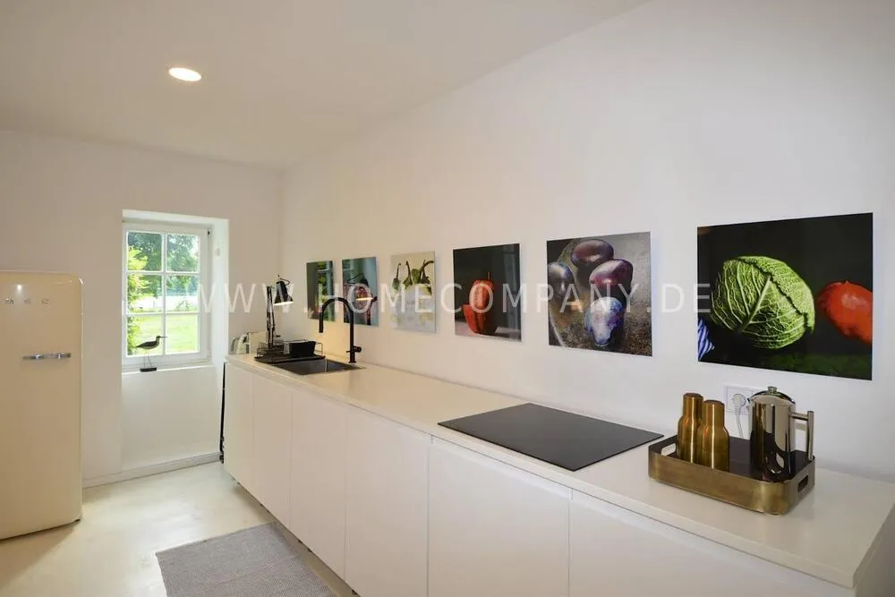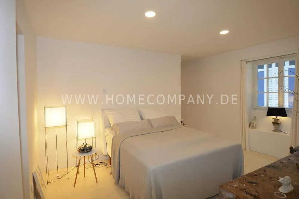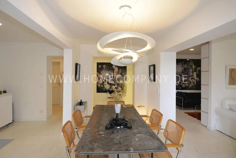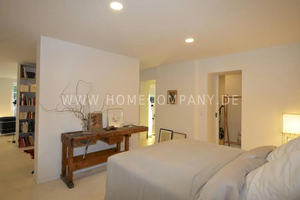 High-quality furnishing with designer furniture, high-quality, white leached floorboards. Exclusive bathroom with free-standing bathtub, fine sanitary furniture and fittings.