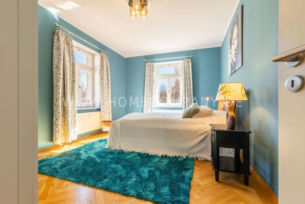 High-quality parquet flooring throughout the apartment creates a warm and elegant atmosphere. Internet is included in the rent.