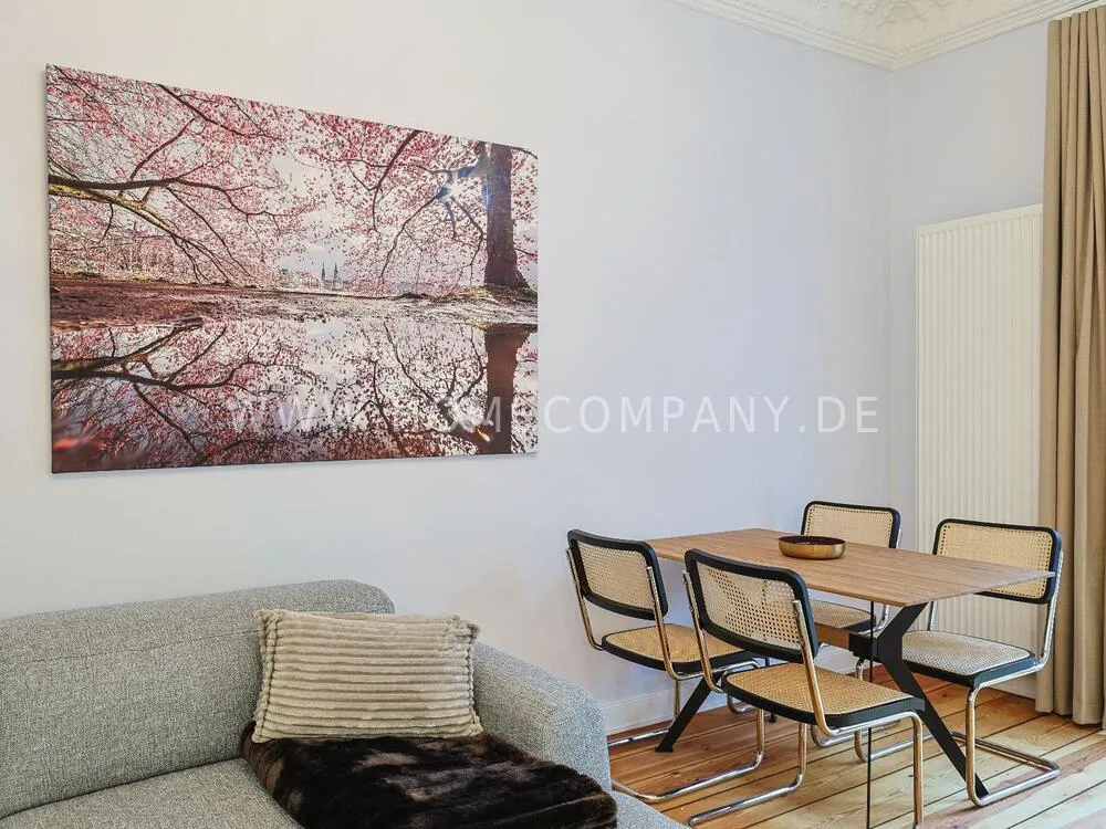 The flat, which was stylishly renovated in 2024, offers a spacious and flexible room design. The high ceilings of approx. 3 meters and magnificent stucco elements create a spacious and airy feeling of space. The new designer kitchen and the bright, modern bathroom invite you to feel good. Unmistakable details and comfort: The classic pitch pine wooden floorboards, paneled doors and stucco decorations emphasize the authentic old building charm. A balcony serves as an ideal place for relaxation and enjoyment. Urban lifestyle combined with historical elegance in a good residential area close to the Alster. This prestigious residential address offers not only unparalleled convenience, but also excellent recreational and leisure opportunities thanks to its close proximity to the Alster. A scenic walk along the water, past the fashion campus and the boathouse of the Hamburg Canoe Club, quickly leads you to the green Alster meadows. Here you can relax, have a barbecue, watch the sailors and enjoy the impressive city panorama.