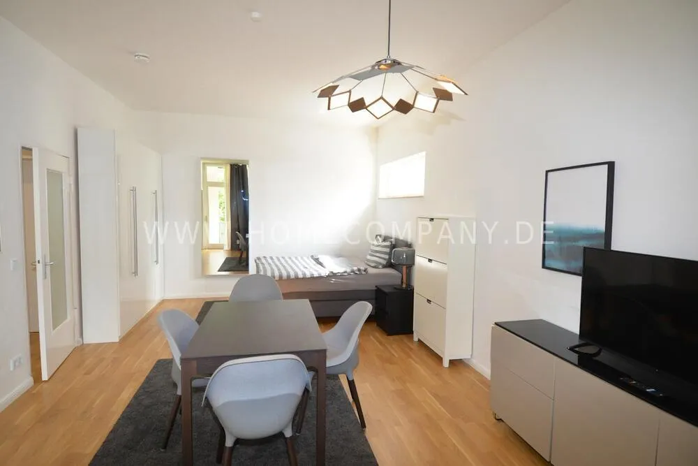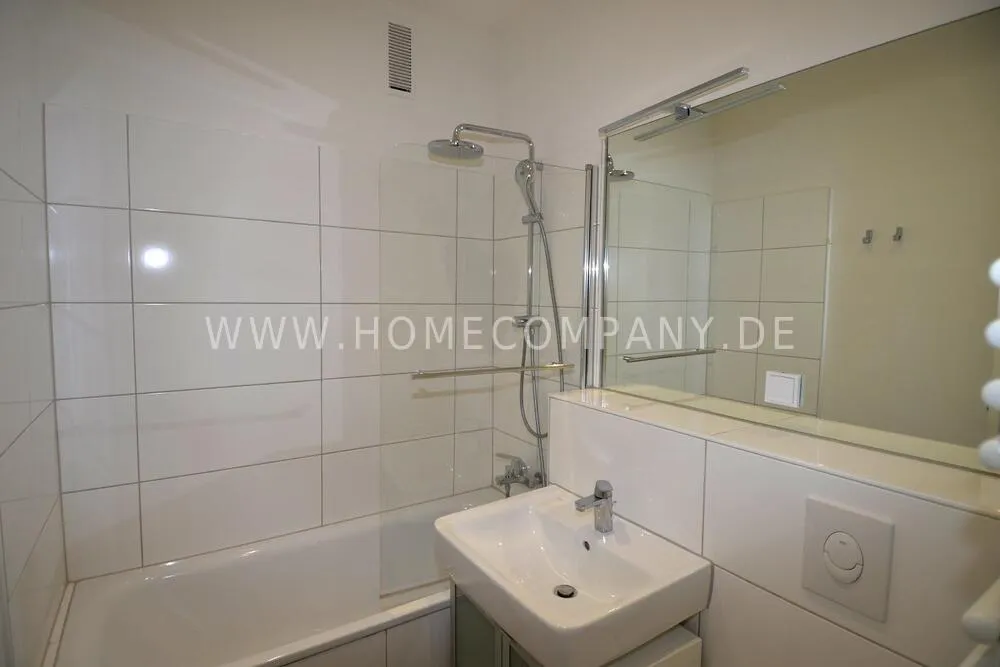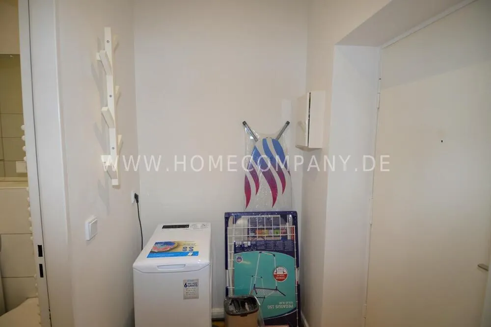First occupancy! One room apartment in Mitte. Fully furnished with bed, table and washing machine. Modern tiled bathroom with shower. The wardrobe is in the hallway.