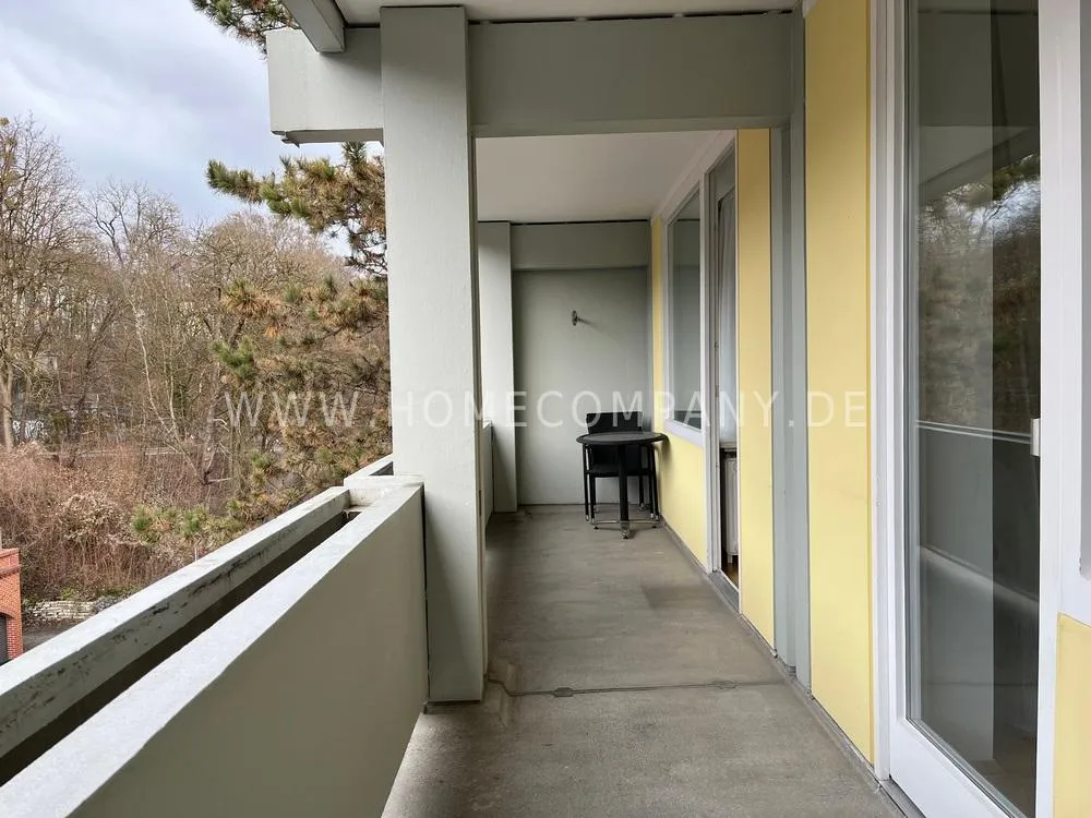 The spacious south-/west-facing balcony is accessible from both the living room and the bedroom and invites you to relax outdoors after work.