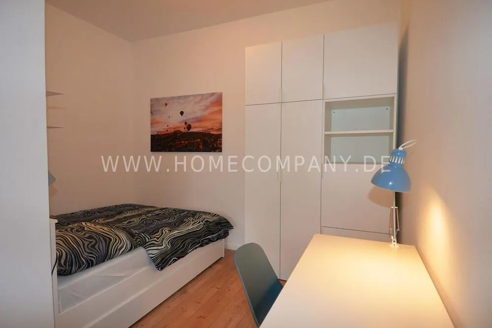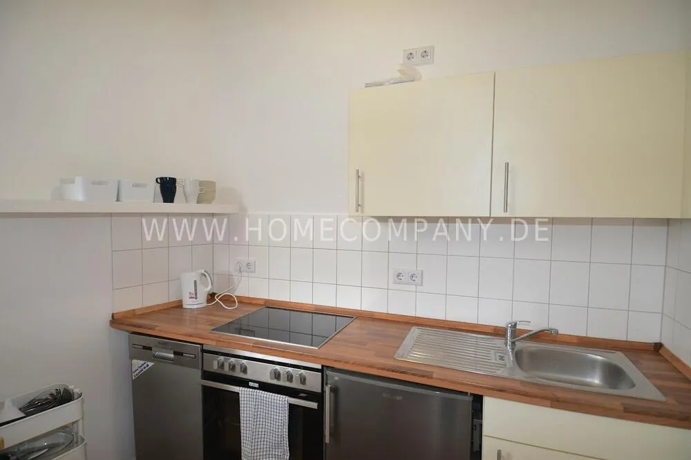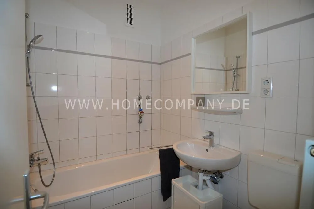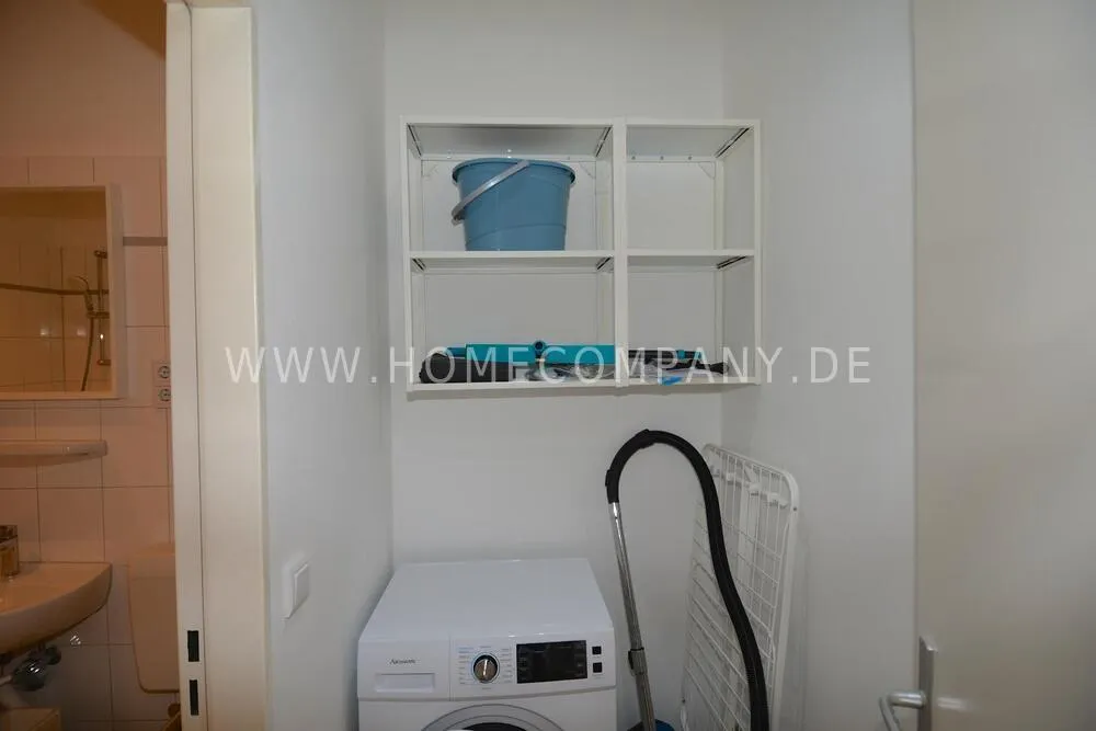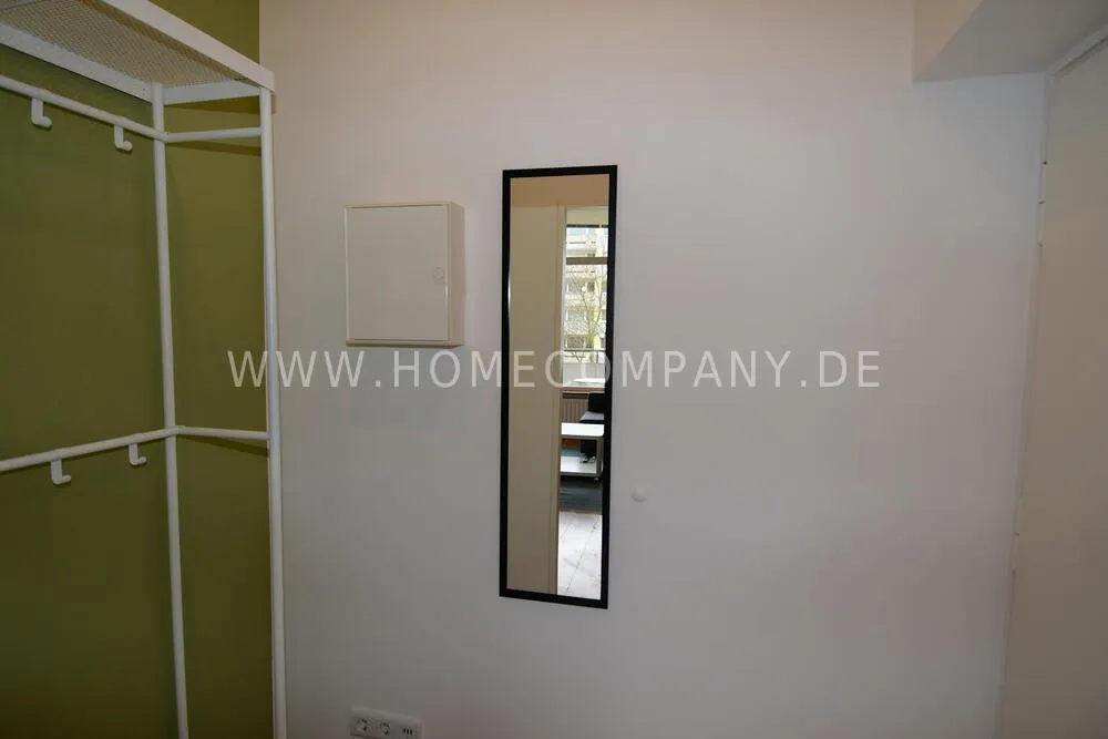 First occupancy! One room apartment in Mitte. Fully furnished with bed, table and washing machine. Modern tiled bathroom with shower. The wardrobe is in the hallway.