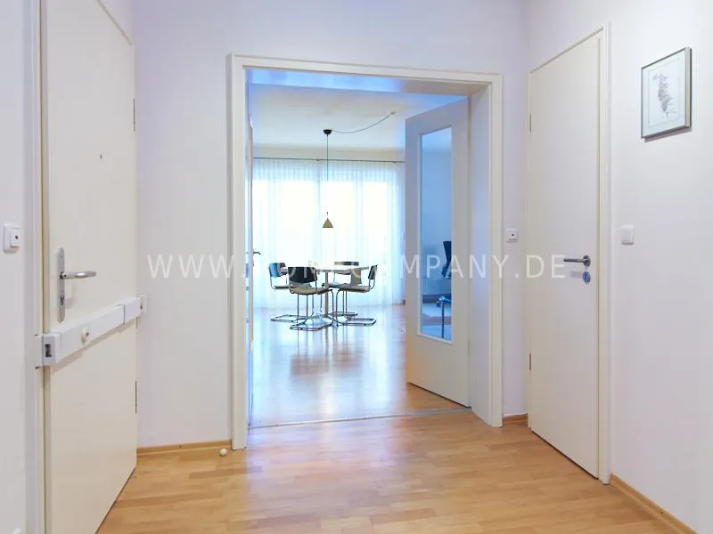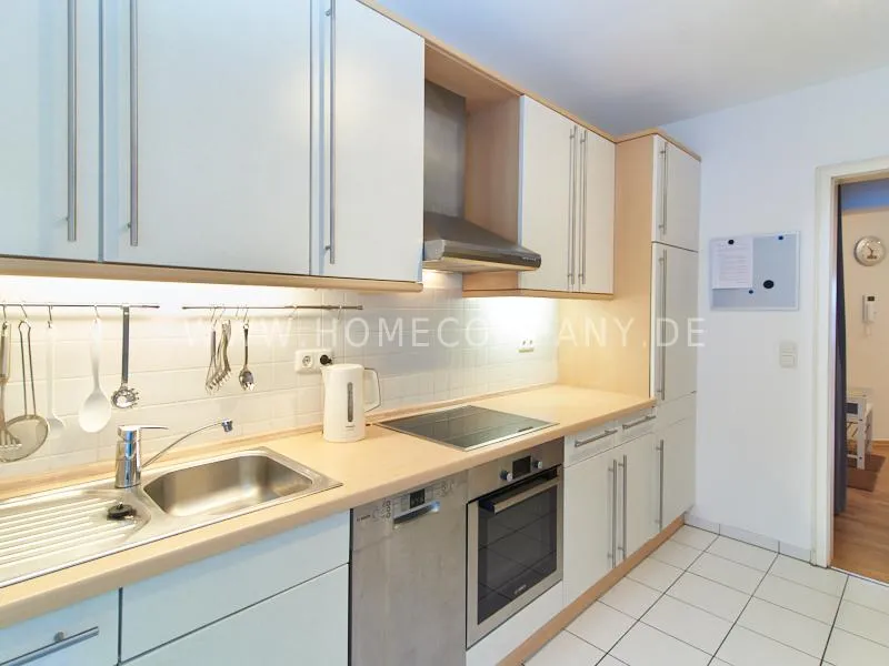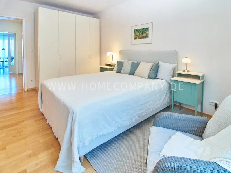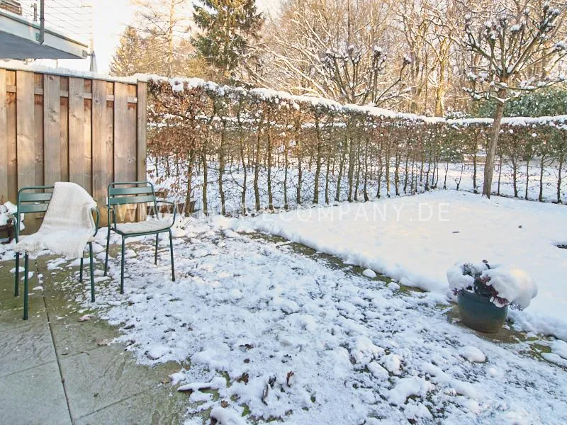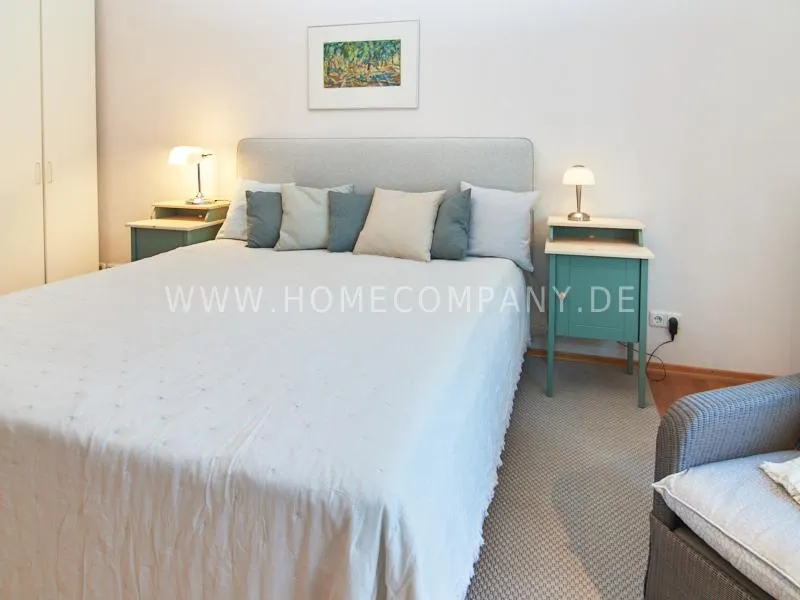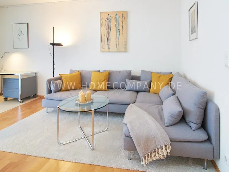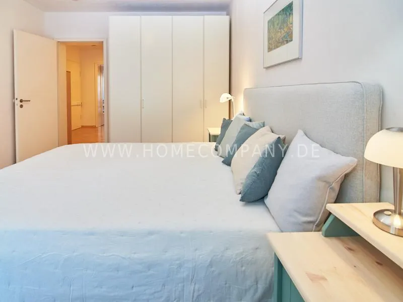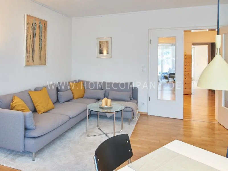 The apartment is located in a small gated community. From the grounds of the residential complex leads directly to the Stadtpark, which can be used like a large garden. The apartment has a large living room with west facing terrace and a bedroom with a further terrace facing east. The kitchen has an additional access to the East Terrace. There you can enjoy a beautiful view over the communal gardens. A small area is protected from rain. The spacious living room has a cozy sitting area, dining area and an additional sofa bed. The spacious living room is equipped with a comfortable sofa area and a dining table. There is an area in the apartment for the home office.
