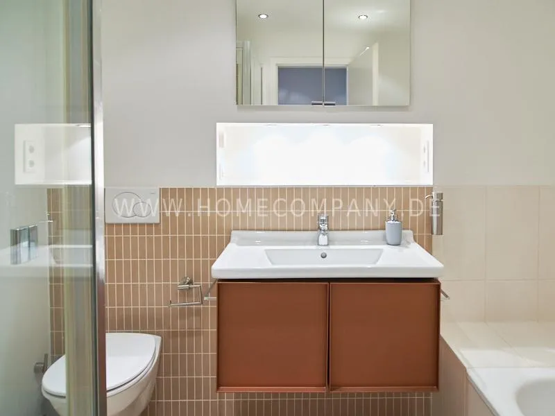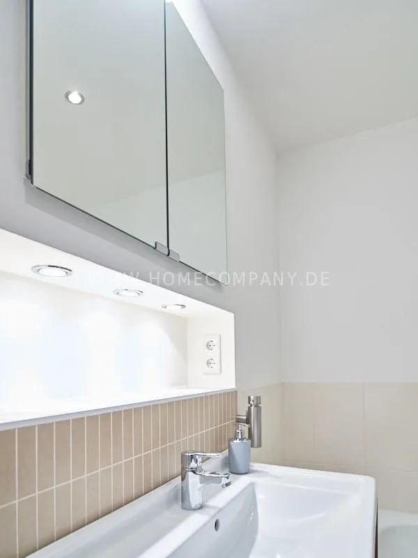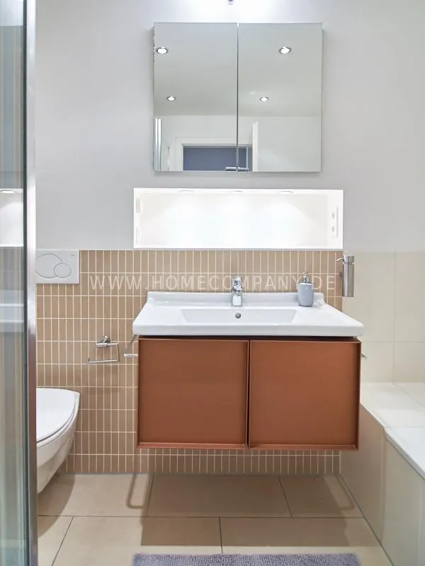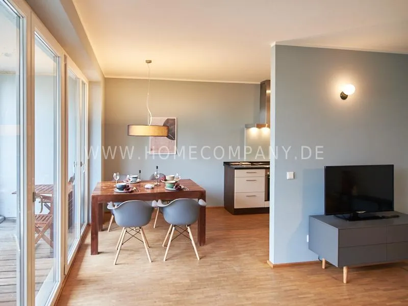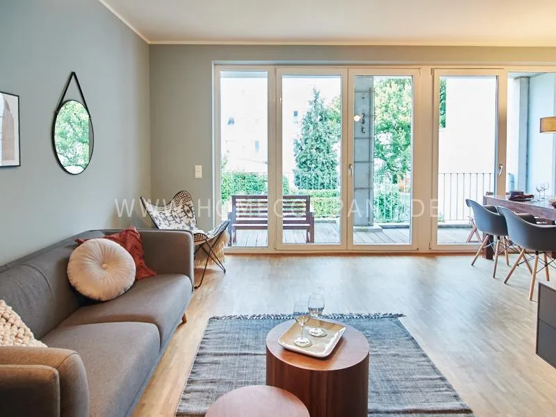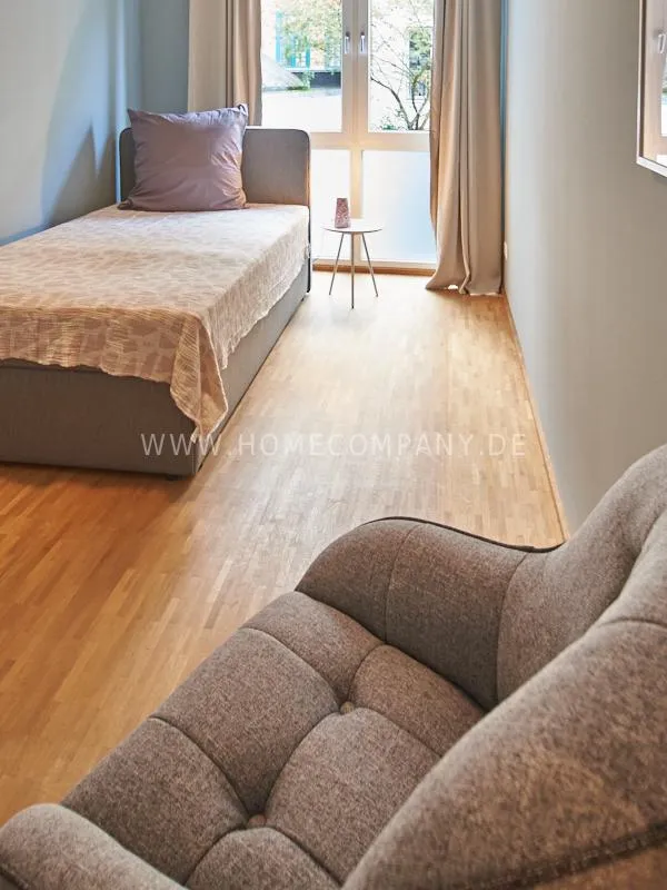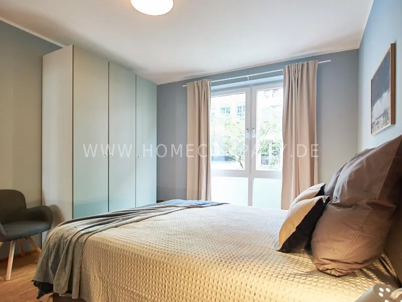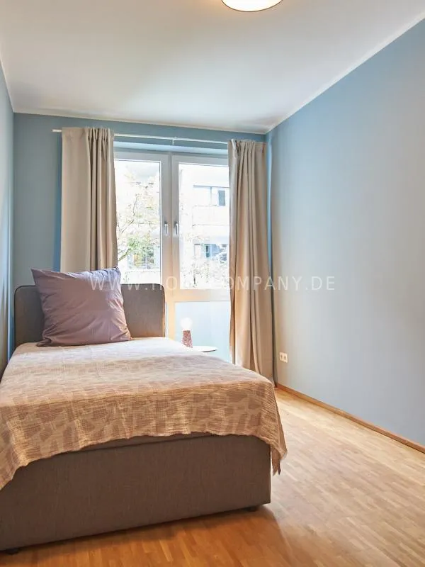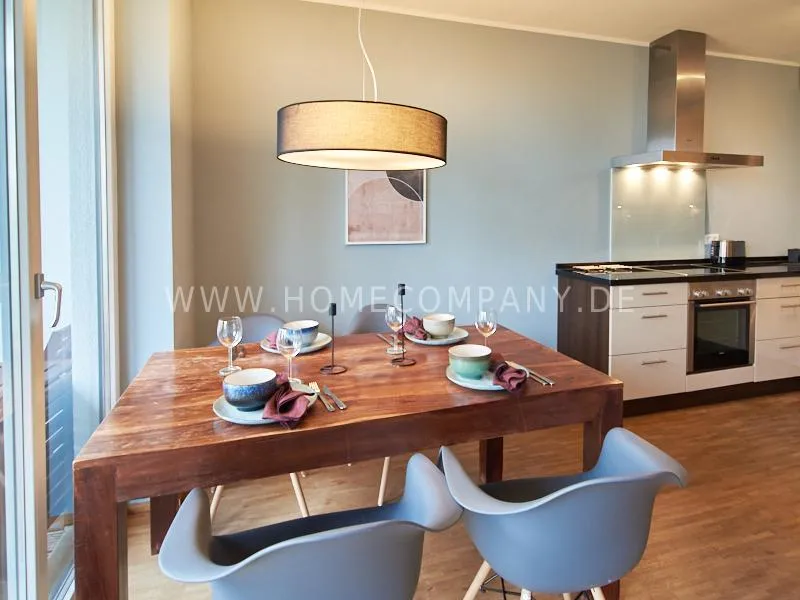 Peace and serenity in a very beautiful, quiet location in chic Winterhude. Classic design meets inviting comfort. The smoky tones are loosened up by elements made of wood and high-quality textiles and give warmth. The exclusive coloring lets the pieces of furniture shine and thus ensures a noble, round overall ambience. A smoky blue and delicate gray harmonize perfectly with each other and structure the apartment in different areas. The living room with adjoining dining area and open kitchen, which faces the beautifully designed backyard, invites you to linger. A large window front overlooks the balcony. The bedroom has a 1.60 m wide box spring bed and plenty of closet space. Another room can be used variably as a guest or children's room. The full bath has a bathtub and an additional separate shower. The apartment is suitable for a single person, a couple or 2 colleagues. The underground parking space and the baoardcast fee are included.