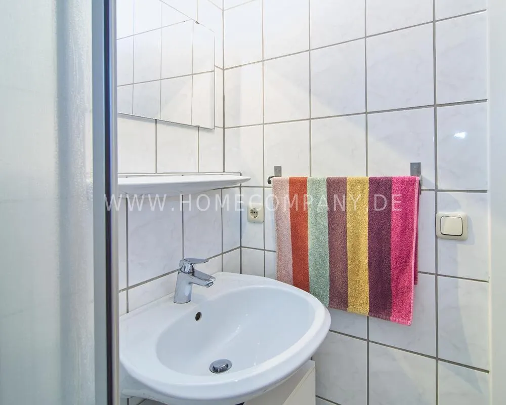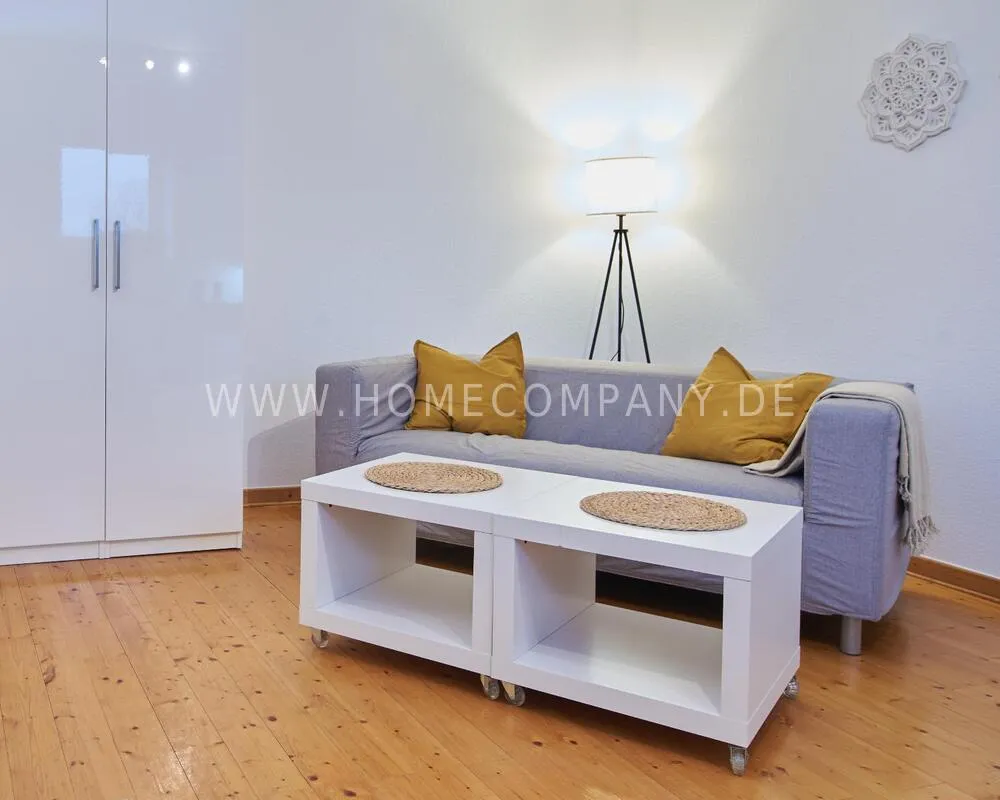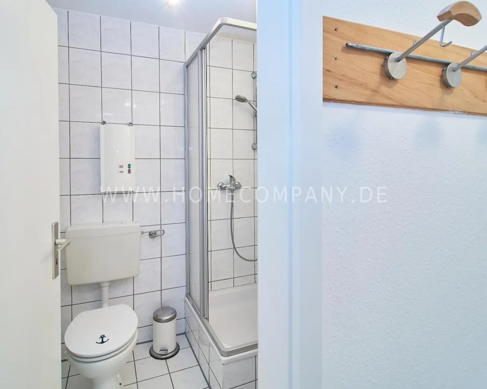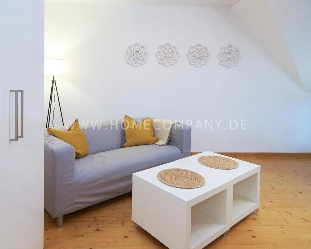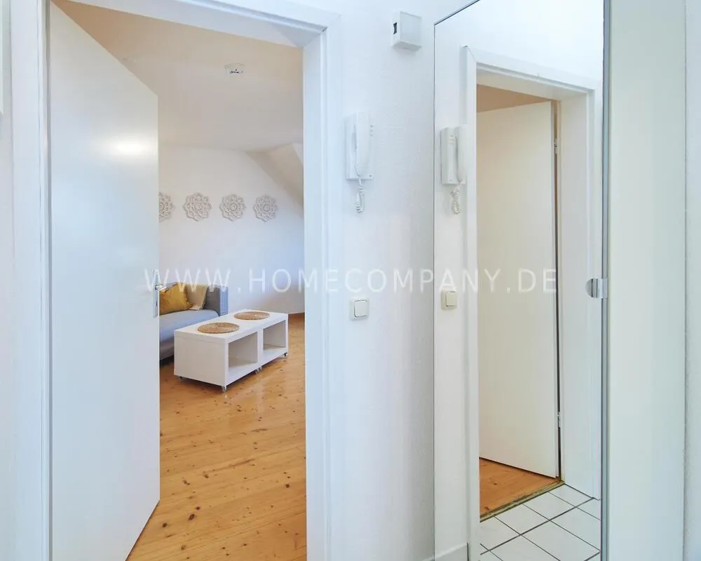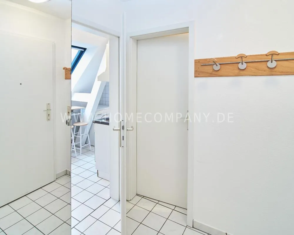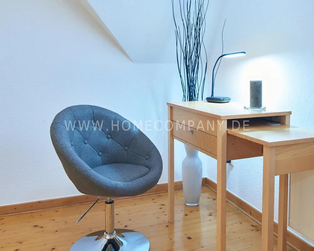 Attic apartment (1 person usage only) with a wide view over the rooftops of Hamburg. The apartment is equipped with a sofa and a 1.20 m wide bed. There is a counter table in the separate kitchen.