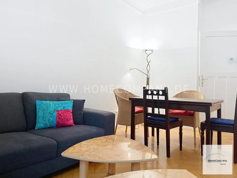 Beautifully renovated period apartment on the 2nd floor (no elevator). The high ceilings are adorned with decorative stucco. Spacious living area furnished with elegant classic pieces, and a separate dining area for four people. The apartment offers one bedroom with a double bed and a second bedroom with a single bed. The fully equipped large kitchen (dishwasher, washing machine, etc.) leads to a charming small balcony. The newly renovated tiled bathroom features both a shower and a bathtub. There is also a separate guest toilet.