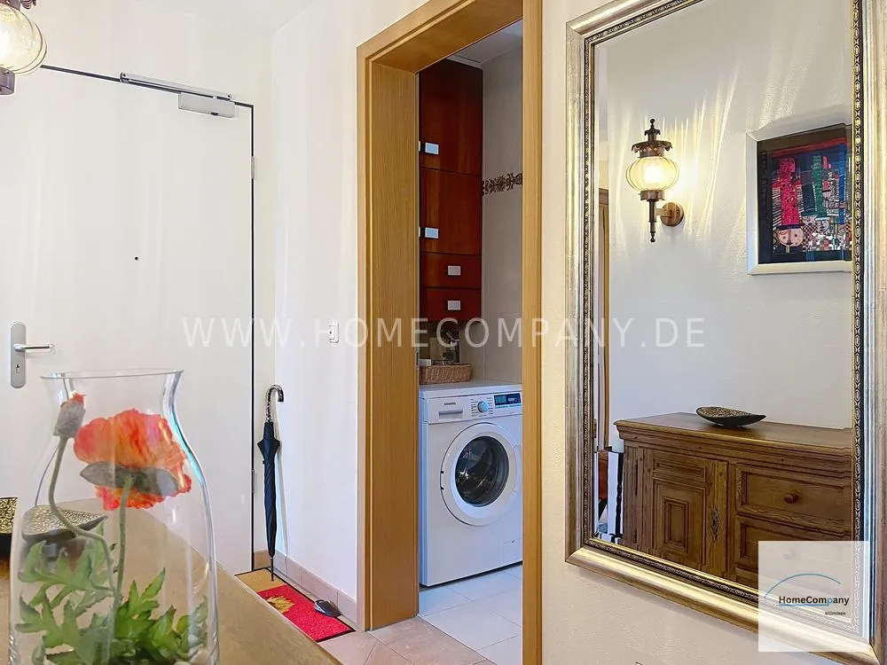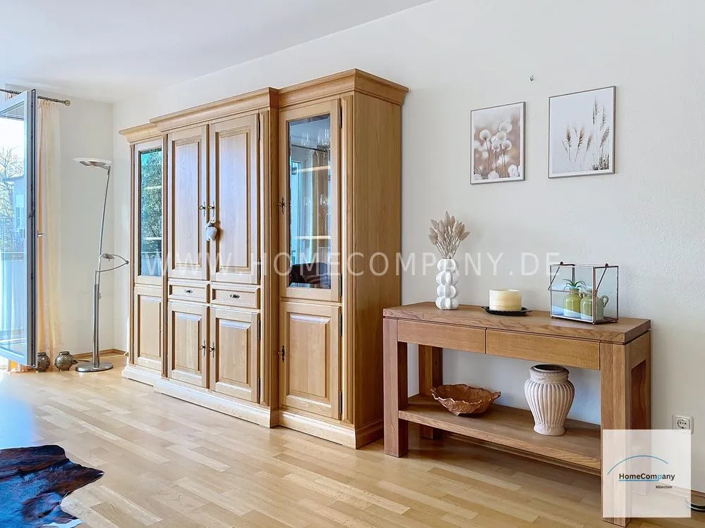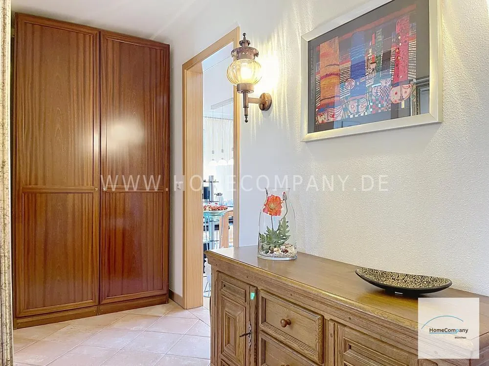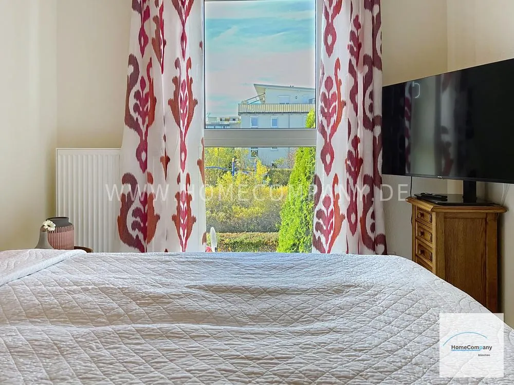 The apartment is located in a quiet central area of Garching, close to both the secondary school (Gymnasium) and kindergarten. From the balcony, you have a pleasant view of a green area with trees, providing privacy and distance from neighboring houses.