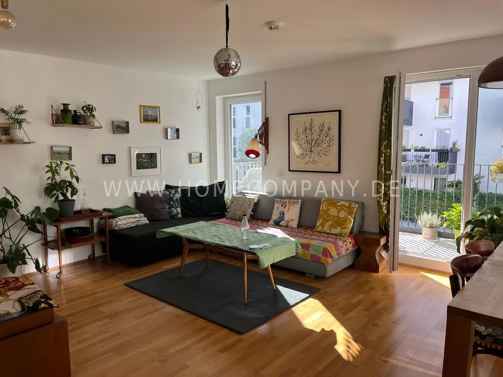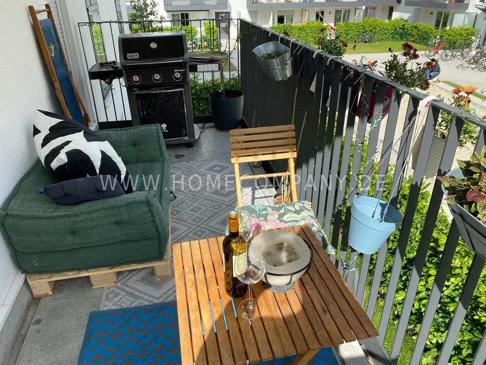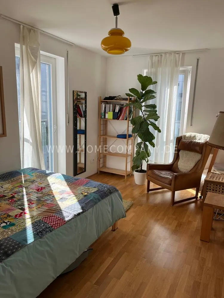 The apartment is located in a quiet, modern residential complex in the popular Haidhausen district.